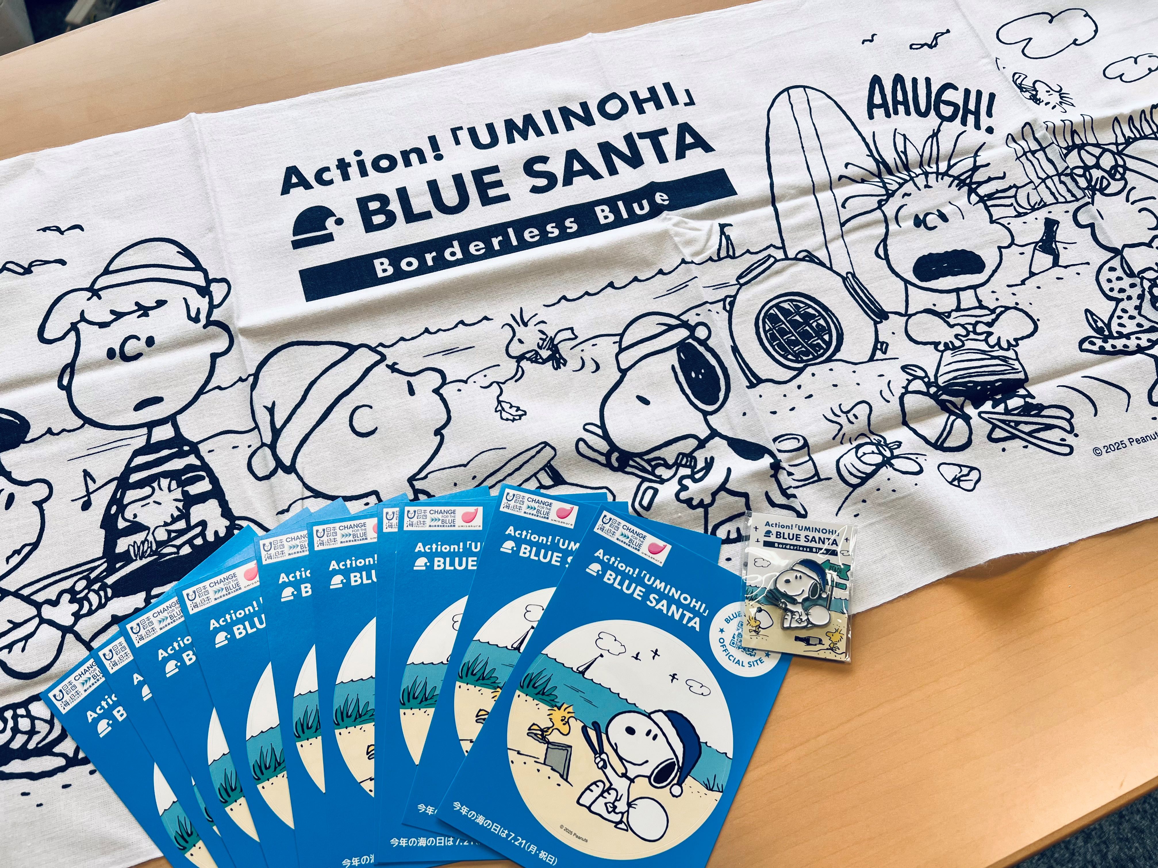 BLUE SHIP事務局様より、BLUE SANTAイベントオリジナルの手ぬぐい、ステッカー、ピンバッジが届きました!
