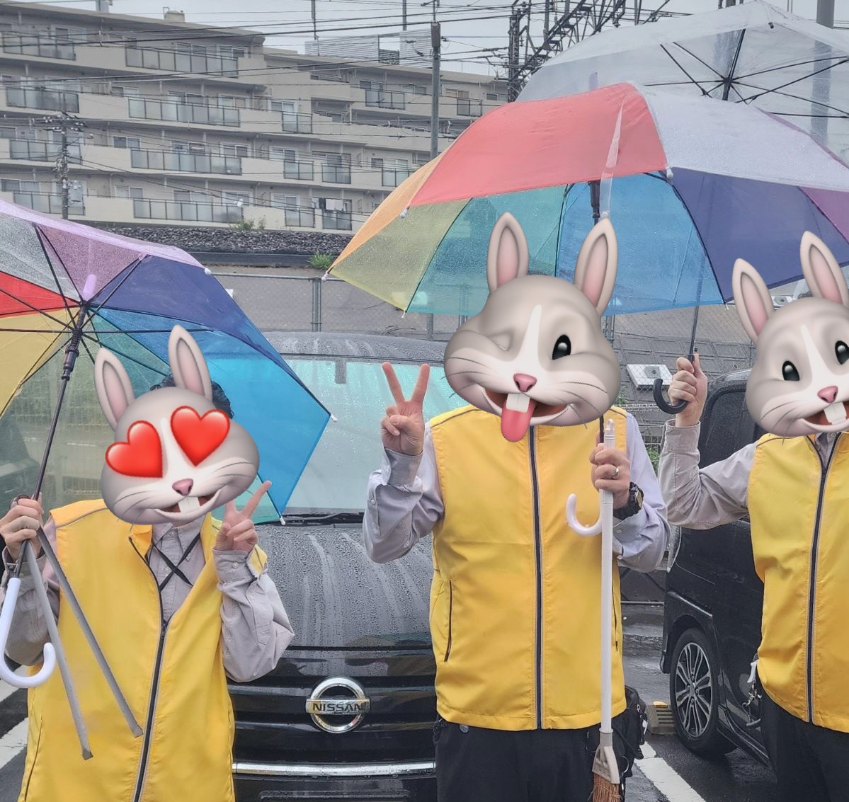 私たちは雨でも地域のゴミ拾いを欠かしません!こんな素敵な傘をもってお掃除していることもありますよ!