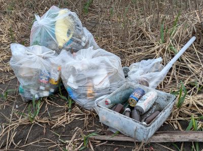 海に流出する前に回収しないと・・・。だが、体力の落ち込みで今日は2時間弱でバテた・・車での往復所要時間が2時間・・・いくらノルマ無しの一人ボランティアでも効率が悪すぎる。