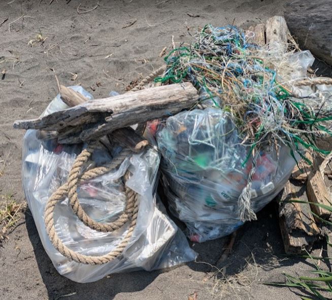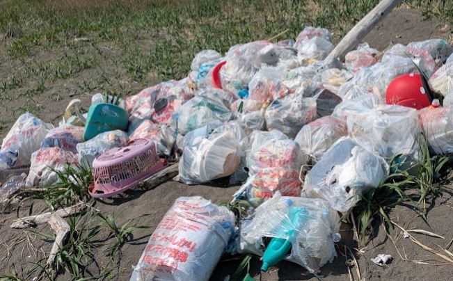 石狩川河口の川側に着くと、沢山のごみが集められていた!!