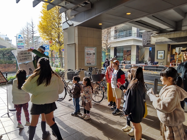 【クイズ】街いく探検隊からのクイズは、街に興味を持ってもらい、自分が住むまちに愛着を持ってもらうことを目的としています。今回はなぜ笹塚の駅前にはなぜ広場があるのか?そのナゾにつながる京王線の生い立ちについてや、駅前にある笹塚緑道トイレの外壁のサビのナゾについての問題を出しました。どちらのクイズも昔と今、未来に思いを馳せ、それぞれがつながっていることを感じてもらう意図がありますが、子ども達にも伝わったかな。