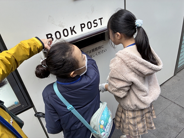 【発見】活動途中、図書館の本の返却ポストを覗いてみたら、なんとソロバンが滑り台よのようにローラーの役目として貼ってありました!これも図書館のヒトの工夫ですね~。まち中にはそんなまちのヒトの工夫があったりして、まちの手触りを感じることがいっぱいです。まさにブラタモリ!ゴミ拾いもまち探検も欲張りな活動です!
