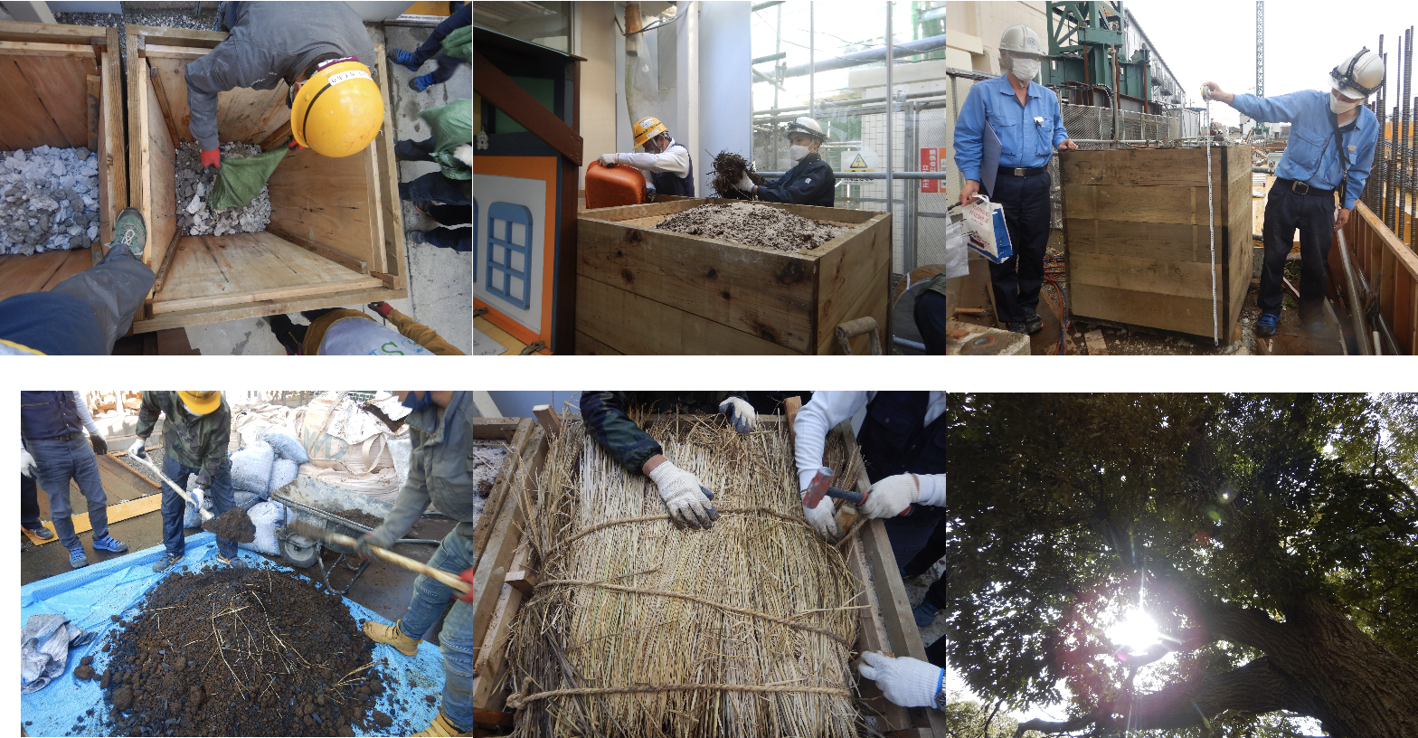 11月24日木曜日は、大田区立赤松小学校の既存土を使用して、同社が製作されたオリジナルプランターにて、数年間小さな森が育むため、森林土壌への誘導作業を同社の皆さまに挑戦いただきました。