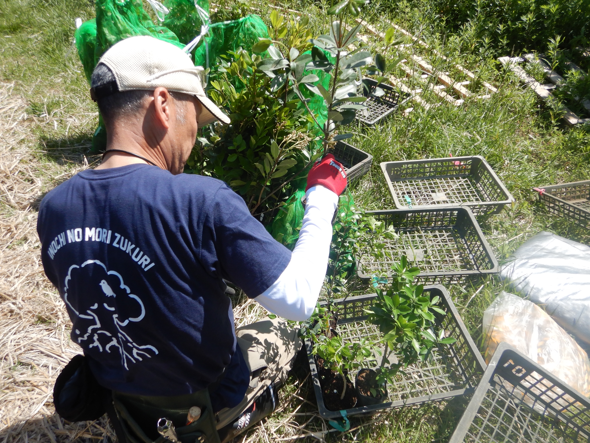 三浦半島の中央に位置する水源林『神奈川県有地 湘南国際村めぐりの森』での土地本来の森の再生を応援くださる横浜ゴム(株)茨城工場&ヨコハマモールド(株)様より、今季も苗木約230本をご寄贈いただきました。