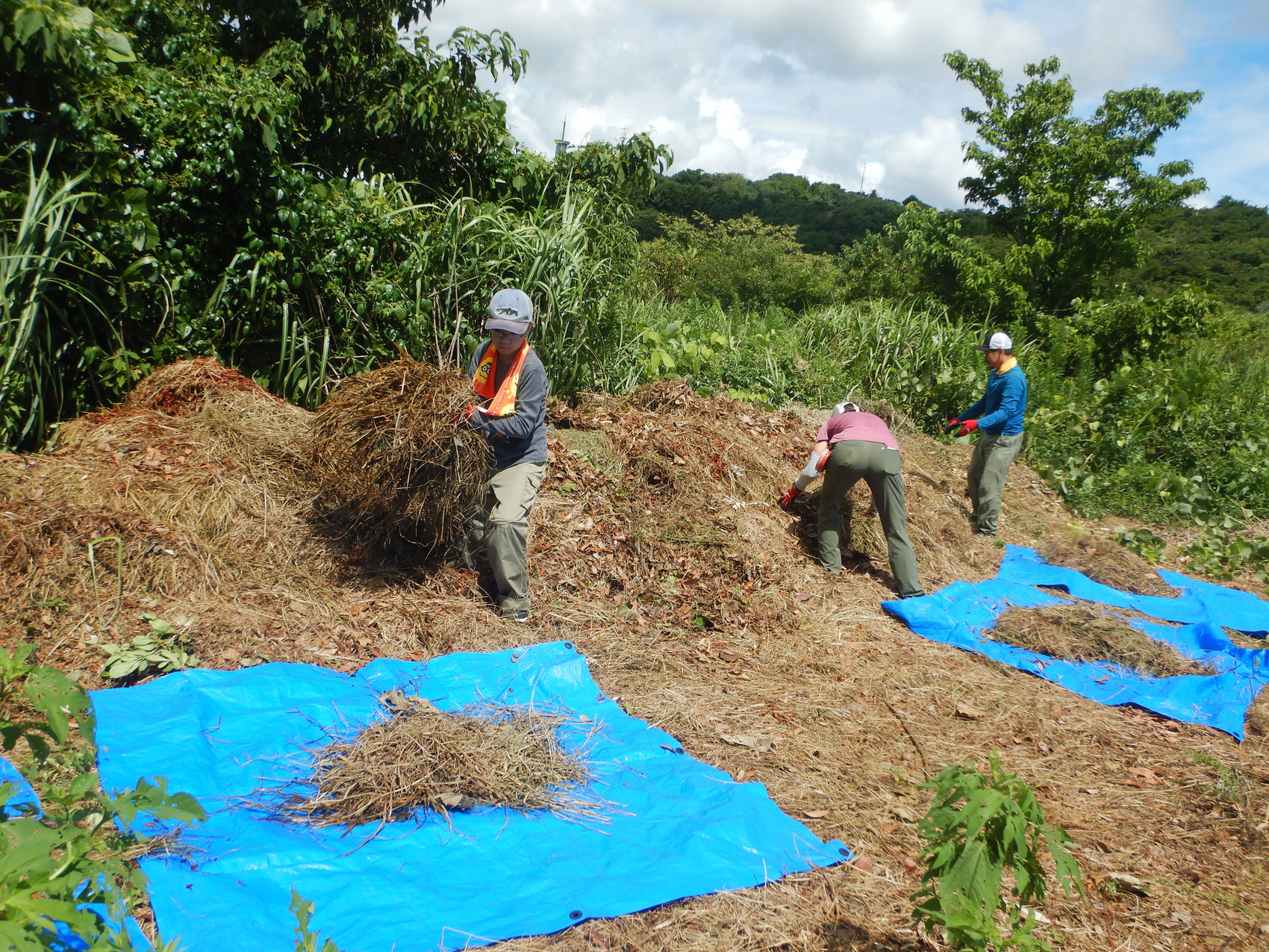 せっせと土の元となる刈草を痛んだ現場へ運び、傷口を手当。