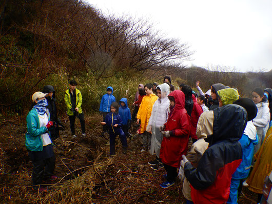 当日は、生憎の雨天となりましたが、小学生~中学生のクラス児童34名と学校関係者9名の合計43名の方がご来場下さり、最初は戸惑いながら、やがて笑顔と共に土壌を健全化する大地再生の作業に勤しんでくださいました。