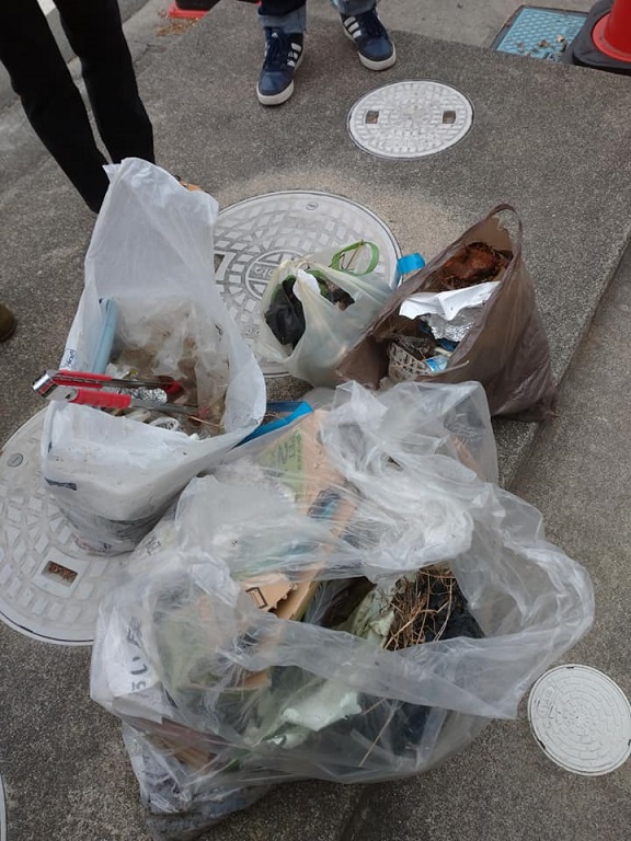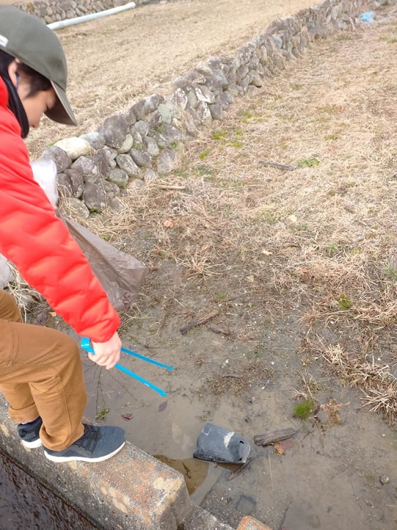 風などで飛散したごみを拾います。