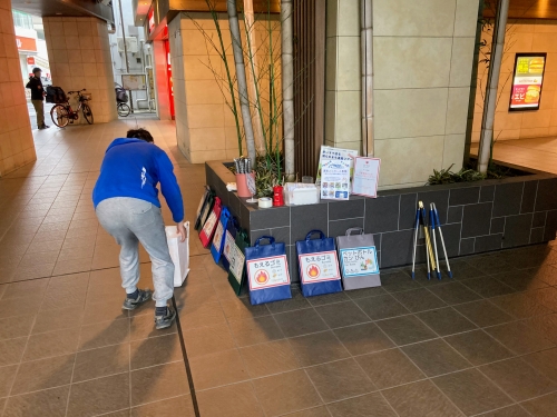 まず、笹塚チーム角田隊長から活動主旨や京王電鉄笹塚駅の歴史について紹介をして頂いた後、各自トングと、分別バッグを持って「ゴミのバトンリレー」をしながらの活動をしました。