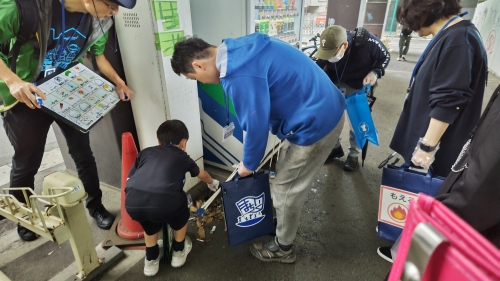 高架下はゴミ少な目でしたが、色んなゴミの種類が!特に目立ったのは吸い殻とタバコの箱です。少ないゴミでもテッパンの「ゴミ拾いビンゴ」を実施して盛り上がりましたー! ナゾの金属、ナゾのプラ、ナゾの紙ゴミは、「これはナゾの金属では?」と、子どもも大人もビンゴ隊長に確認をしに来てくれて、交流メインのこの活動の本領発揮です!どんなゴミが、街に落ちているのか、なぜこのゴミがここにあるのか、想像することが普段の生活にはないのでそれだけで面白いです。