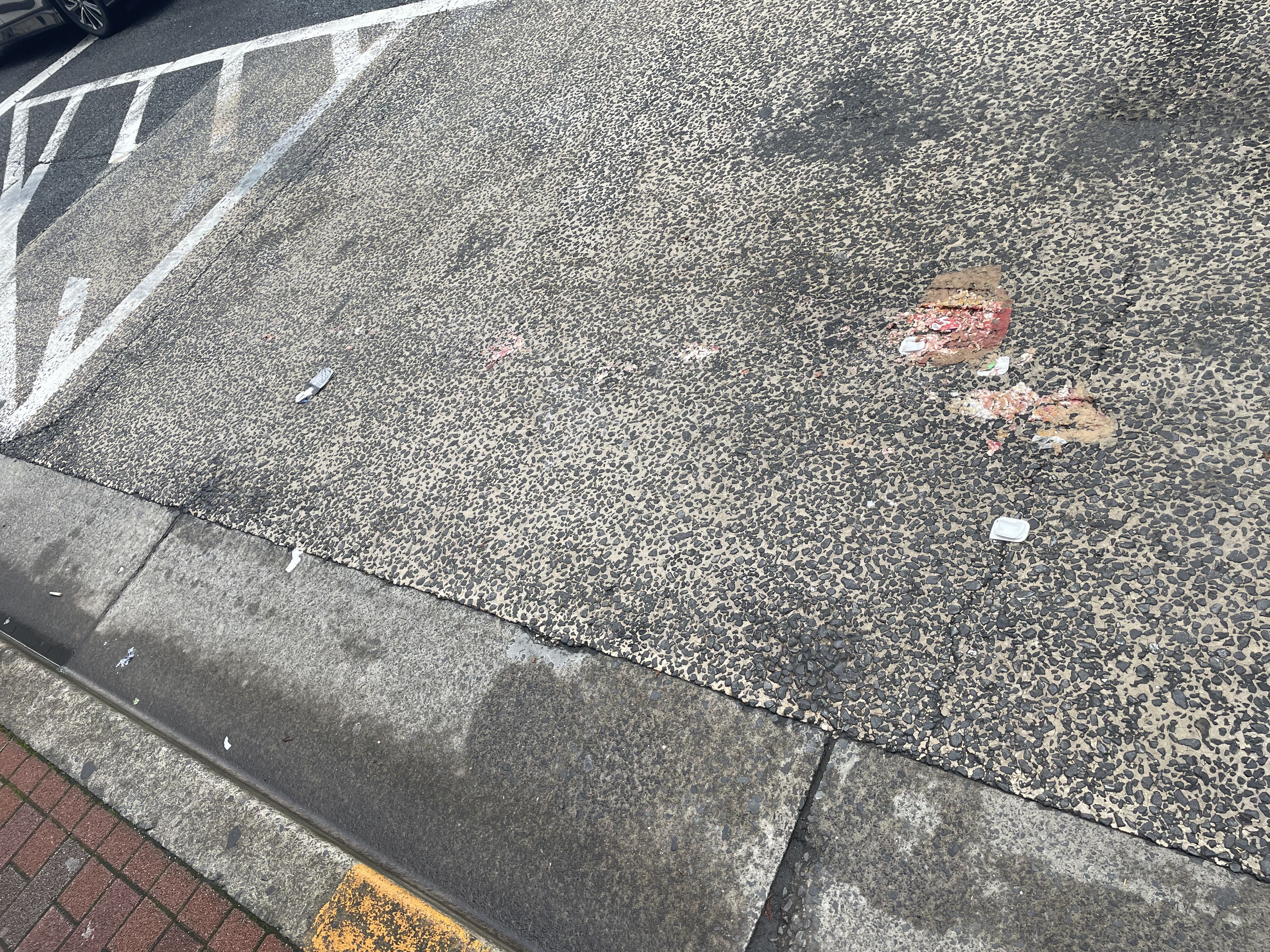 今回見かけたのは、ファストフードの紙製のバーガーボックス。和紙の材料である紙料がまだ固まりきってないときのような、ドロドロの状態で道路に広がってしまっていました。