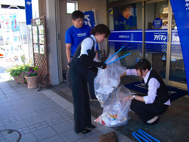 そんな中、毎月1日は恒例の駅前清掃です!