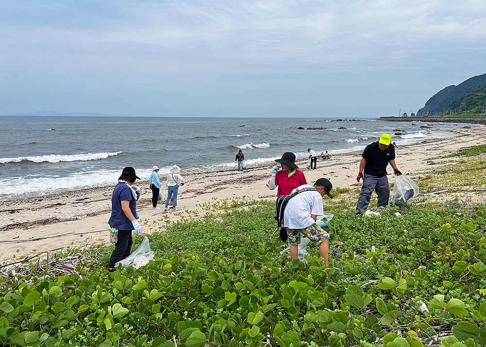 数日前に梅雨入りしましたが、当日は珍しく天気の心配のいらない予報。新潟市内からの飛び入り参加や、大学生、地元の方の参加などもあって賑やかなビーチクリーンとなりました。