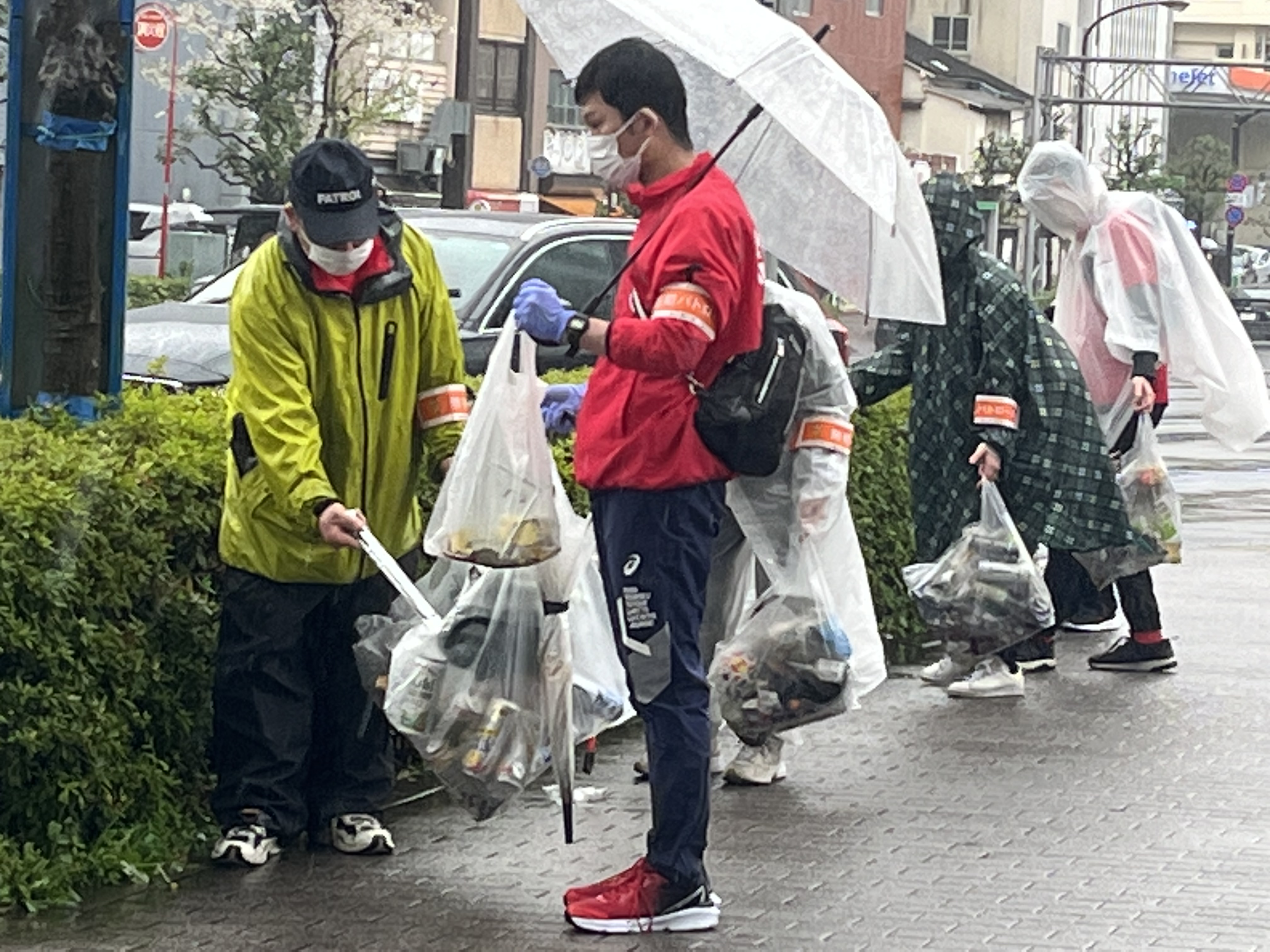 天候不良のため、ランニングはやめて時短の計画としました。雨の中でしたが、星屑拾いを一時間半くらい行いました。星屑拾いをみんなでやって街をまわることも防犯パトロールだという思いでやりました。結果として、可燃1.不燃2(45ℓ袋)となりました。