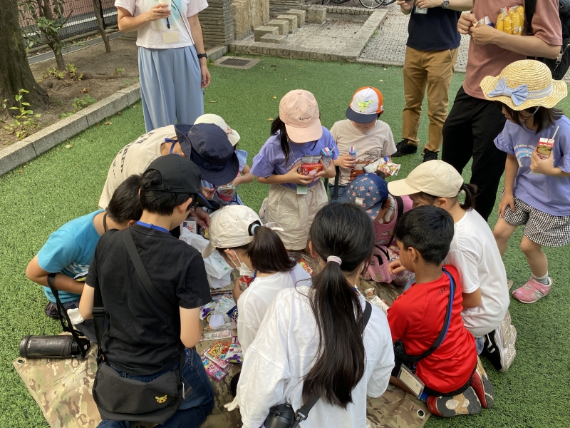 1時間ちょっとかけたゴミ拾いももう終わりです。ゴールは、スタート地点と同じ新道公園。参加した子どもたちには、ジュースとバナナが待っていました。そして、いよいよビンゴ対決の結果発表。今回はなんと4対4で同点。