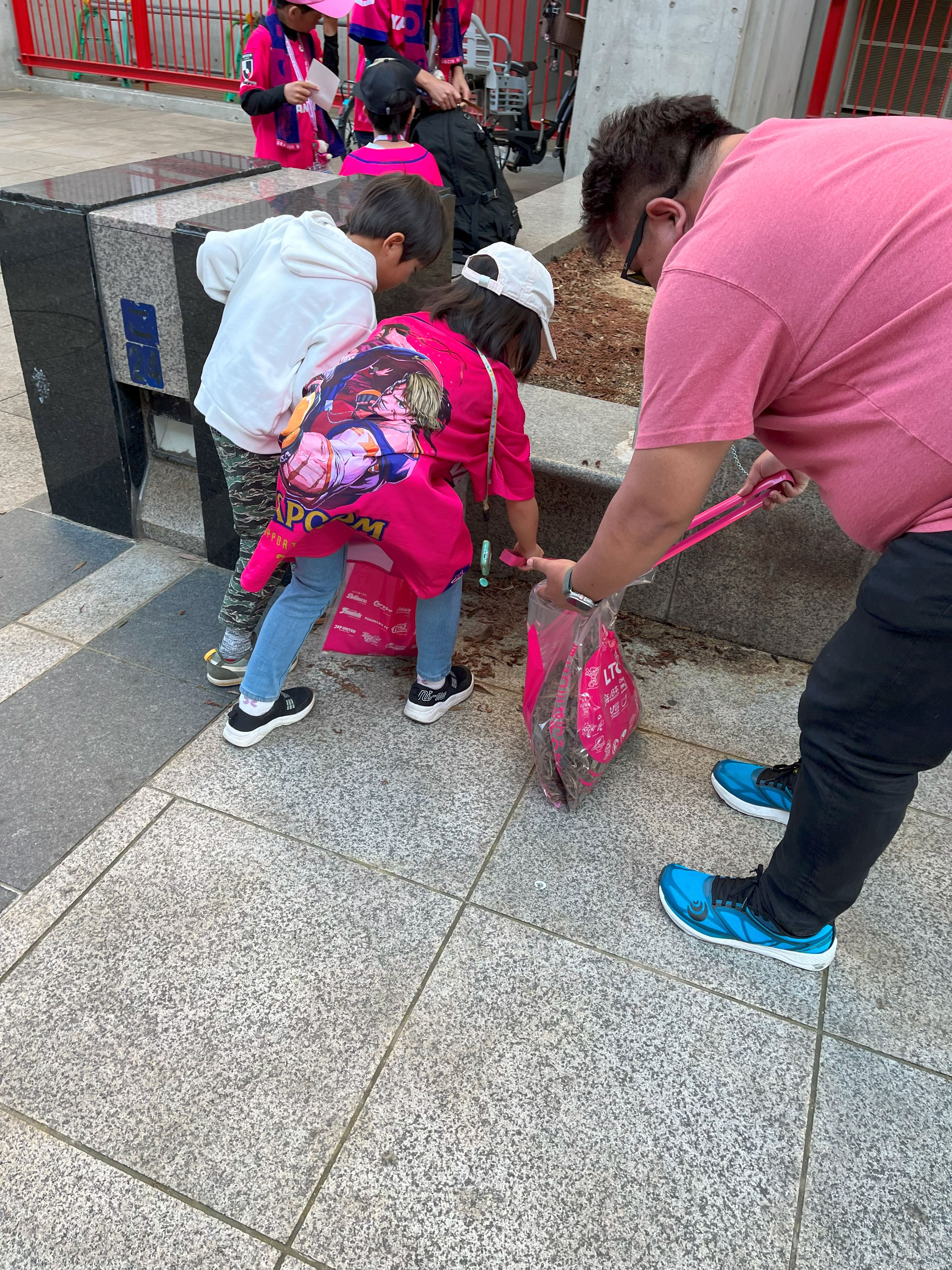 試合終了後は敗戦にも関わらず多くのサポーターの方がゴミ拾いに参加してくださいました。中にはコンサドーレサポーターの方もおり、チームの垣根を超えて活動を実施できたことをとても嬉しく感じました。