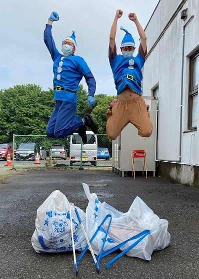 最後は協力していただいた方々と、ゴミ袋と一緒に決めポーズ!