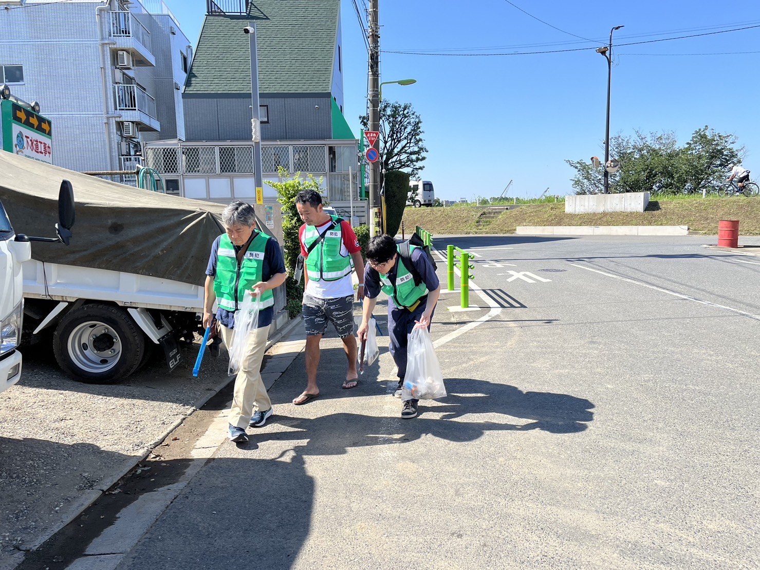 車通りの激しい通りもこの日は念入りにゴミ拾いを行いました。