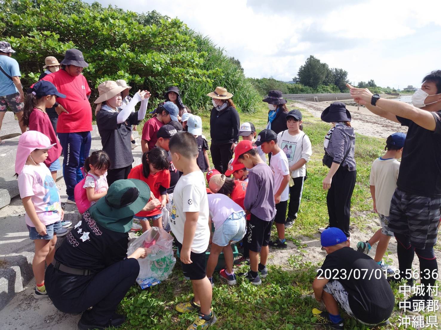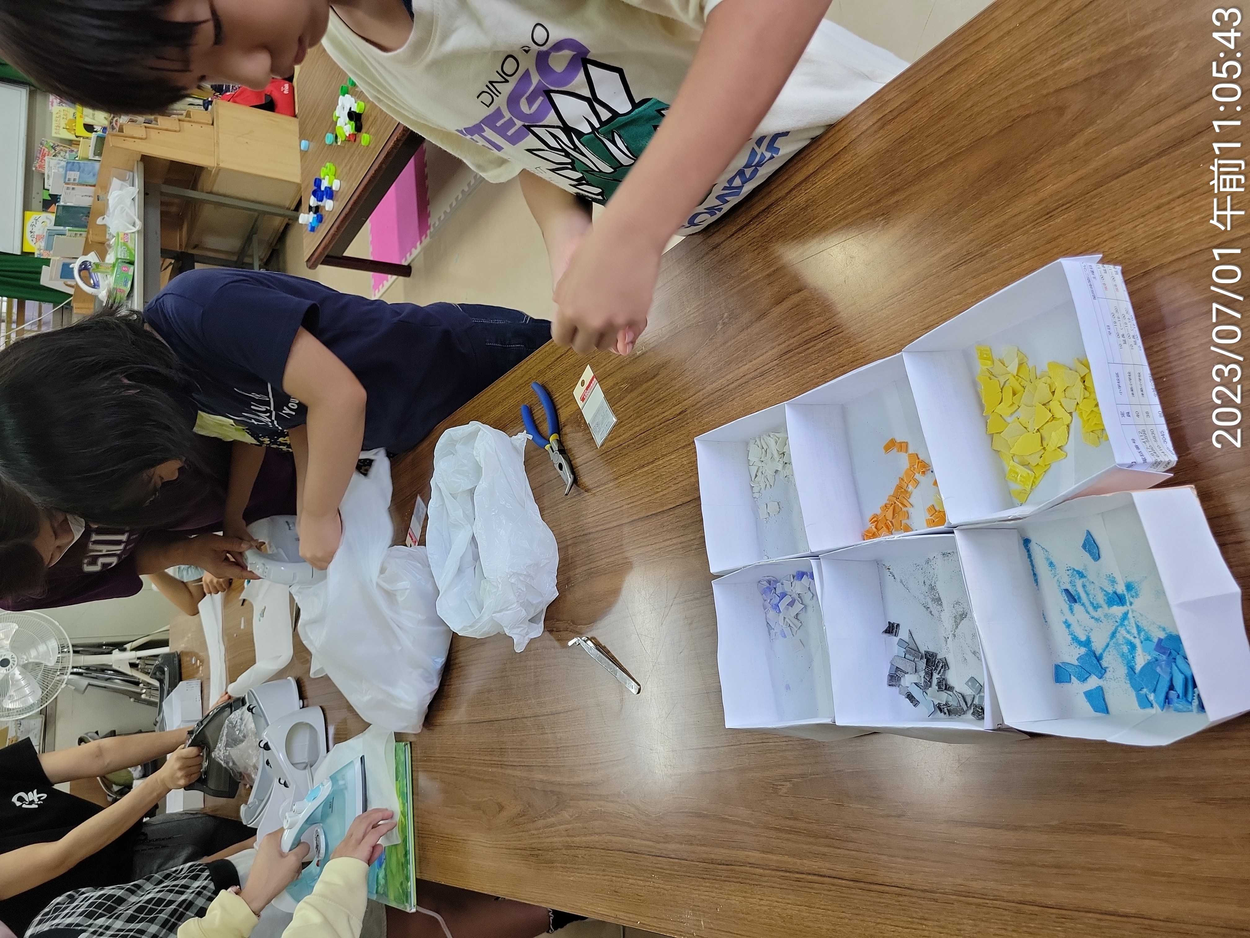 「マイクロプラスチックって何?」と言う話からはじまり、小学生対象に実際にそこにあるビーチの砂の中にあるマイクロプラスチックをすくってみよう。という体験を行い、拾ったプラスチックごみを使ってアート作品を作り出すというところまでのイベントでした。