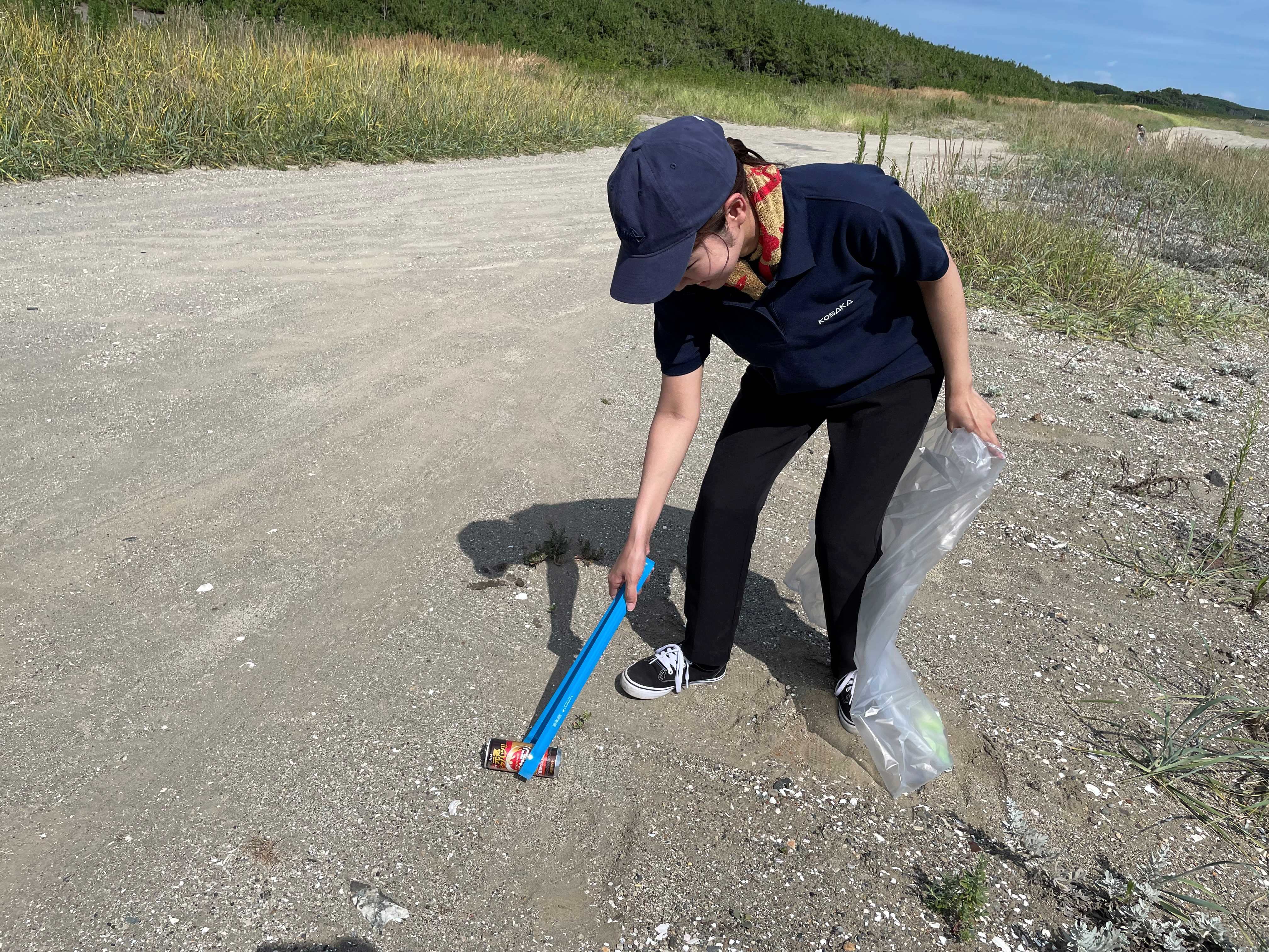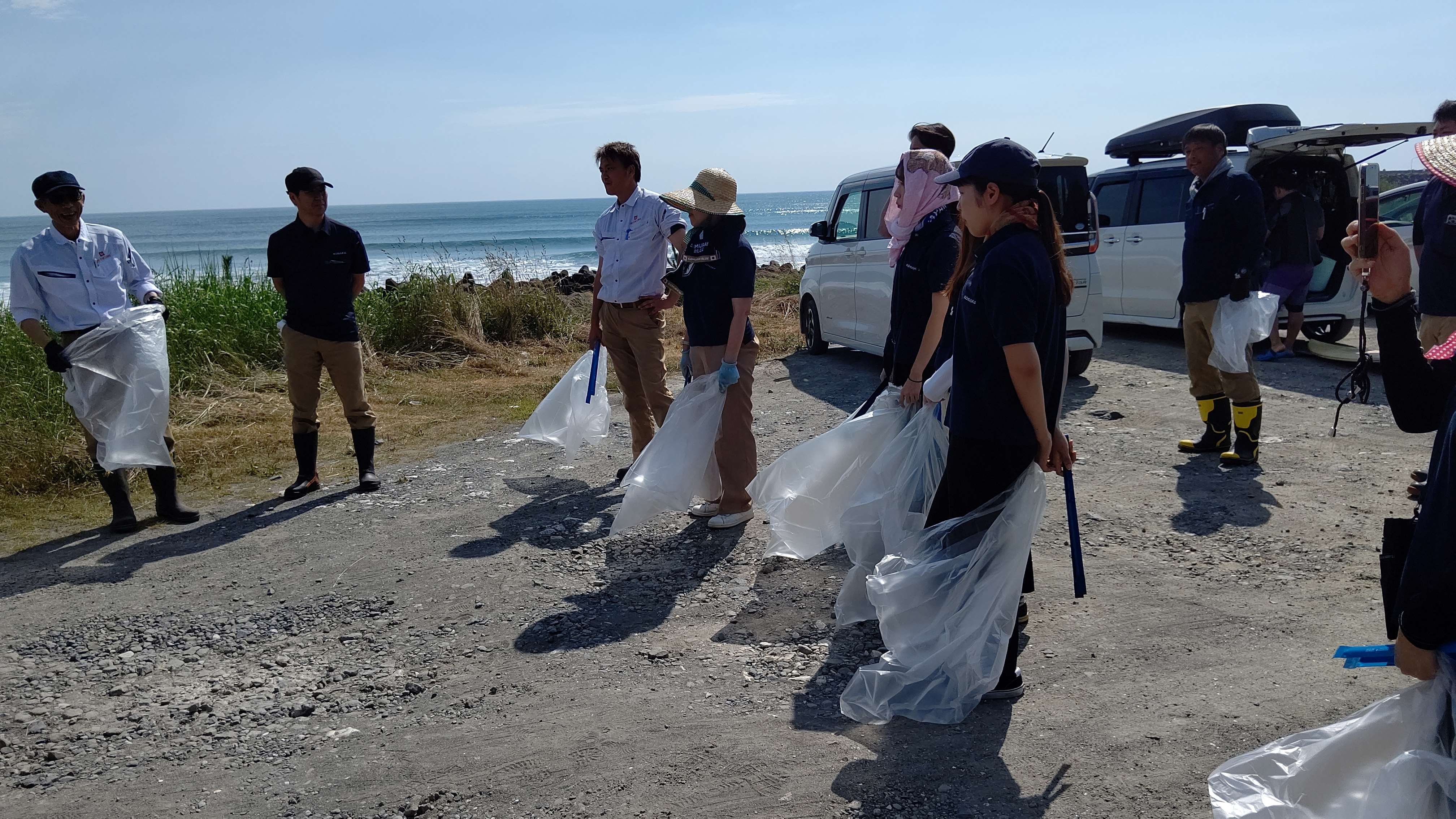 トングとゴミ袋を手に海岸のゴミ拾いをスタート!