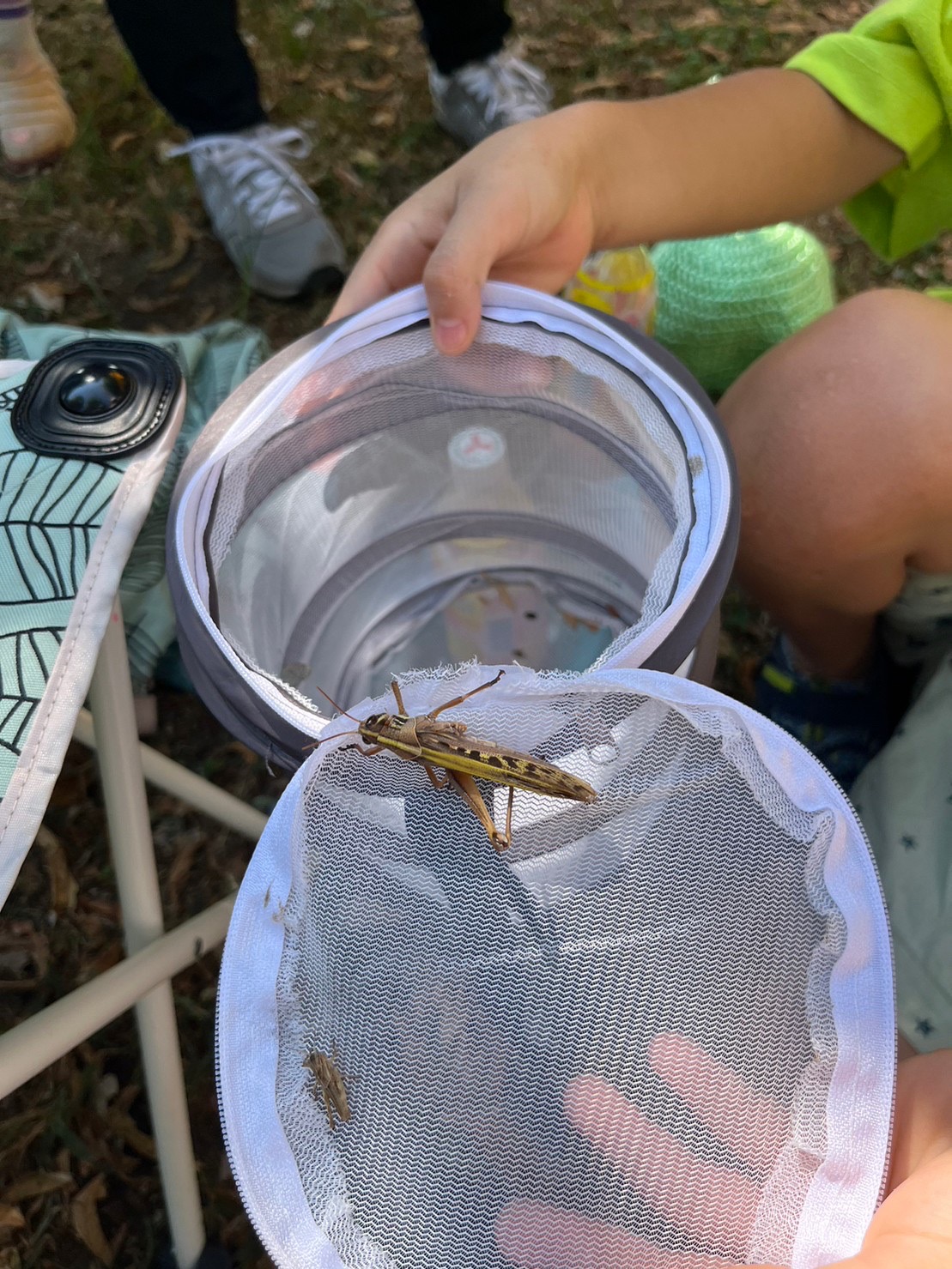 子供達も協力してくれ、バッタや蝶など、20匹弱を捕まえました。
