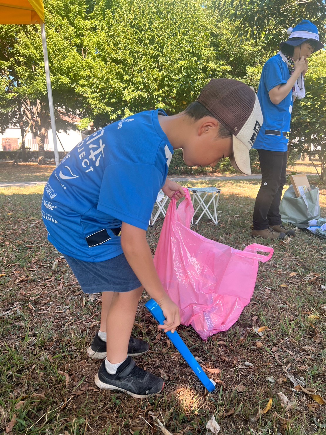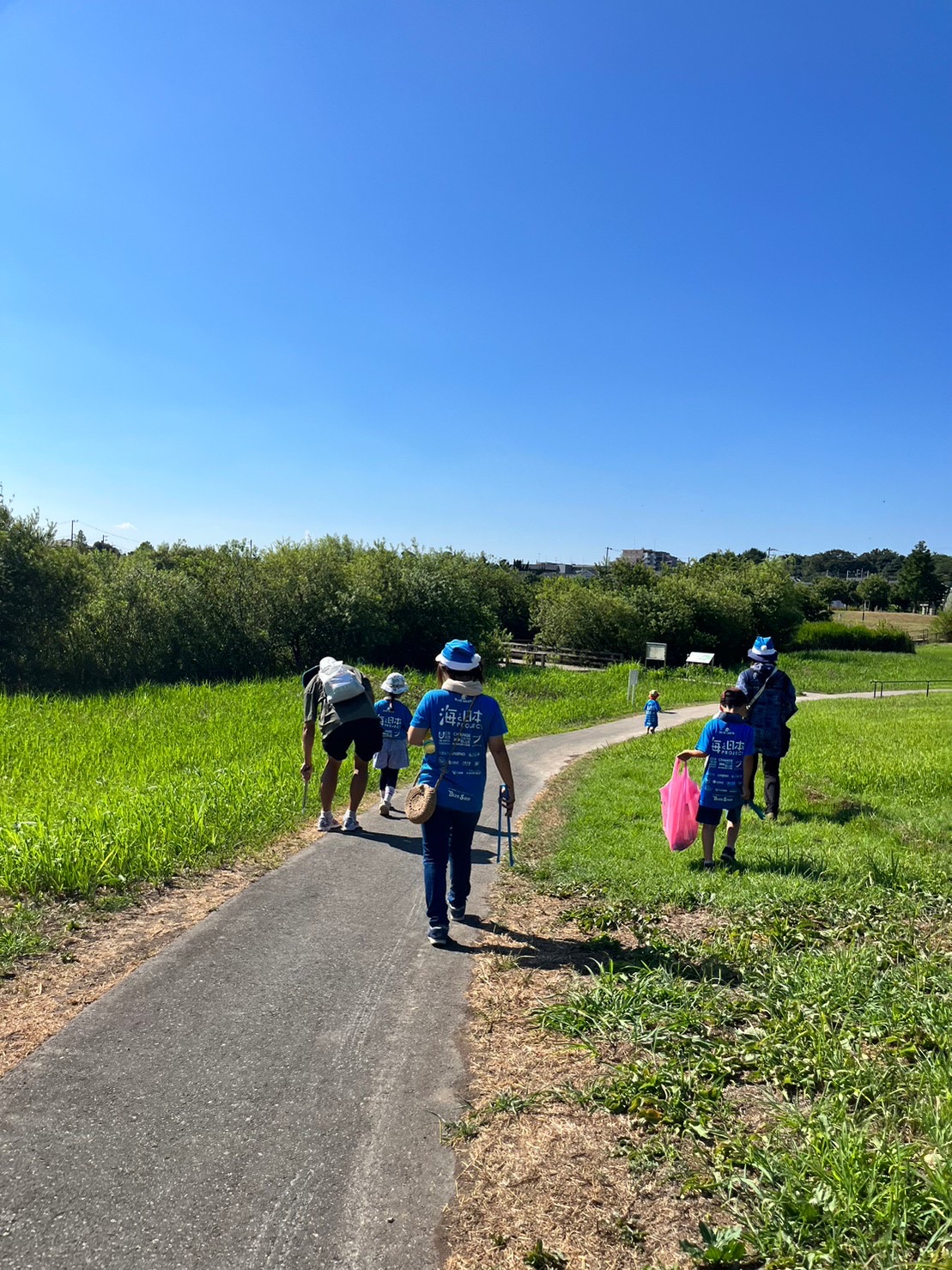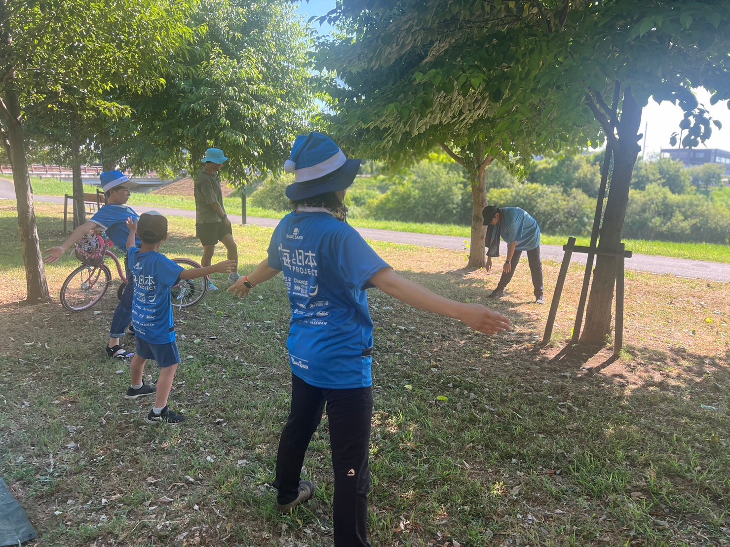 ラジオ体操が終わったら、ゴミ拾い&生き物探しのスタート!