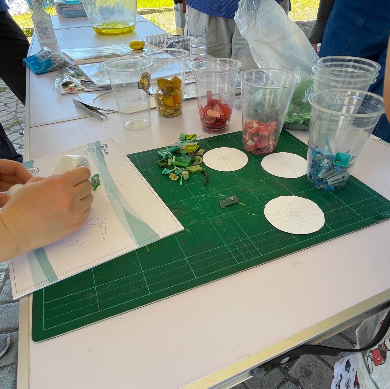 ★ごみ拾い終了後は、プラごみアート制作