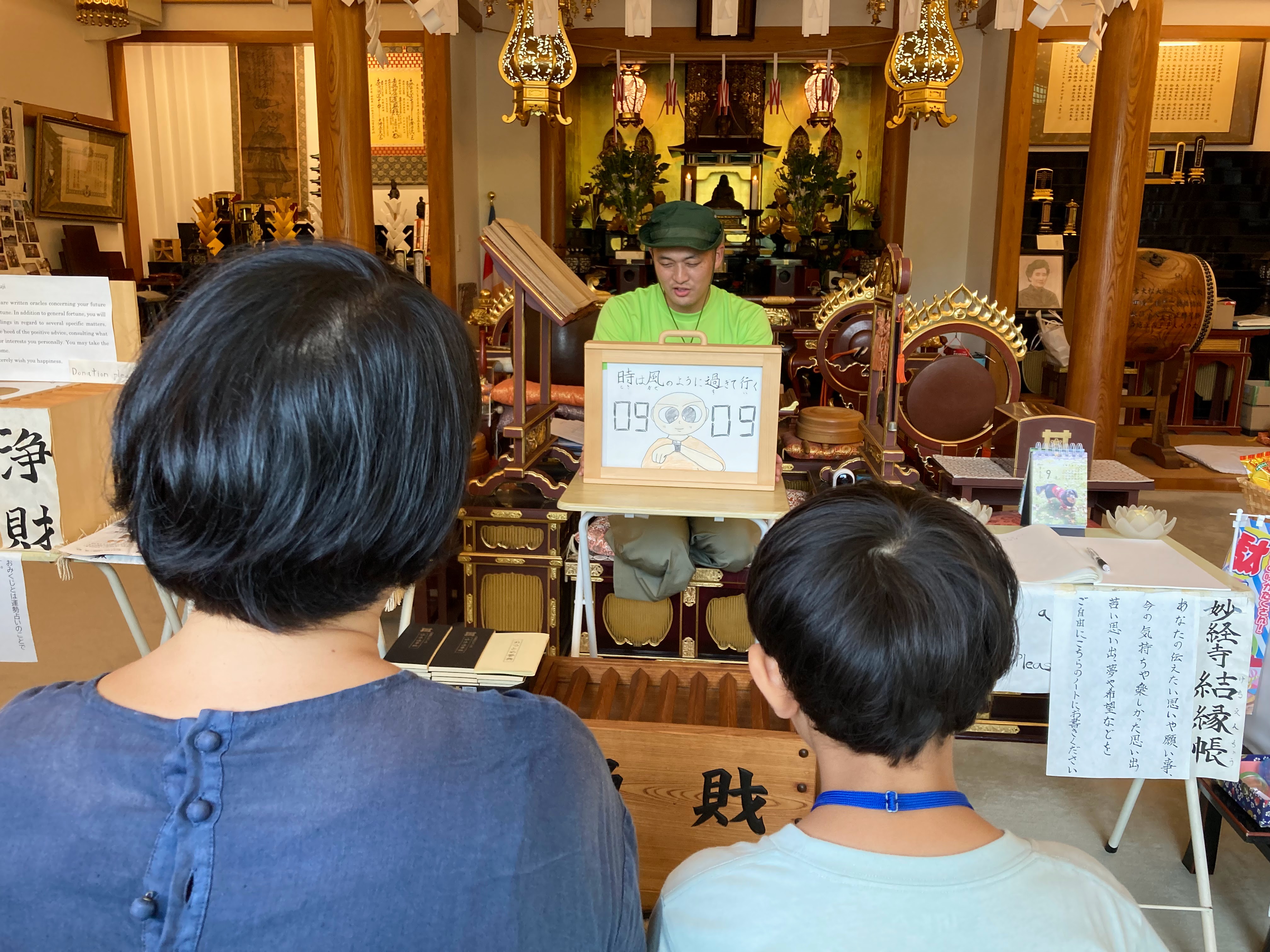 ろっぽんぎ寺子屋チームの活動は少数精鋭で行いました。妙経寺副住職のいつもの手作り紙芝居から始まり、テレ朝通りからサンマリノ大使館脇を下り、暗渠を巡る探検でした。