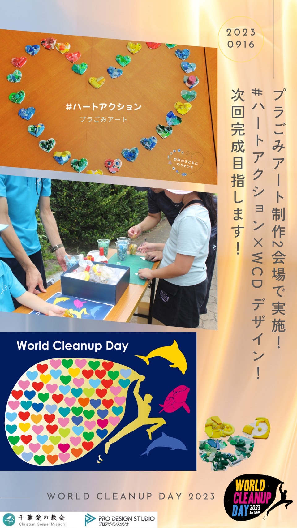 WORLD CLEANUP DAYにちなんで、そして今世界の子どもたちにワクチンを届けようと、ハートアクションも取り入れて、一つの作品を作っていきます!