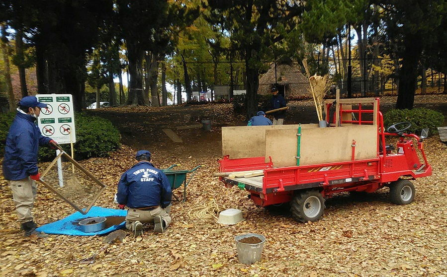 公園の整備の車も停まっていました。この季節の風物詩のような気がしました。