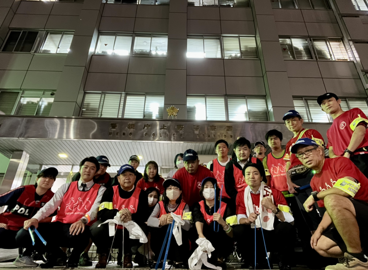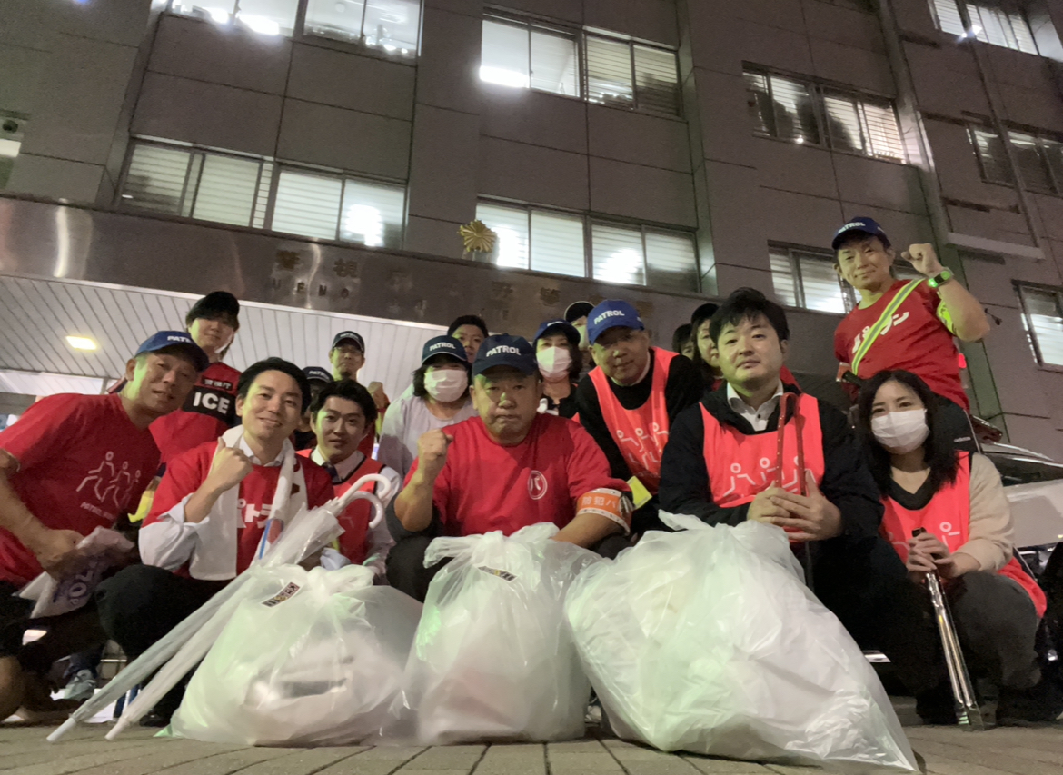 警察官、区役所職員、企業ボランティアやピーポーズのメンバーと総勢19人が集まりました。