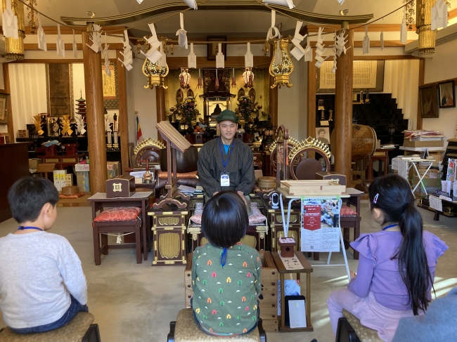 お寺に戻りゴミ拾いビンゴの結果発表です。今回は4ビンゴ達成です。