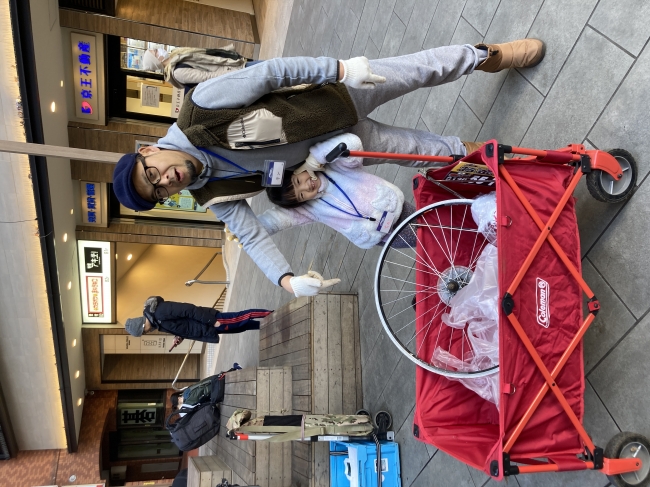 京王クラウン街笹塚・フレンテ笹塚チームの12月の活動は、観音通り商店街振興組合さんのご協力のもと、笹塚駅の南側を探検(清掃)しました。なんと、集合時間の1時間前から大きなカートをひきながらゴミ拾いを先にしていた親子隊員さんもいました❣ なんと自転車のホイールも回収したとか?! 笹塚ではホイールは2つ目です。