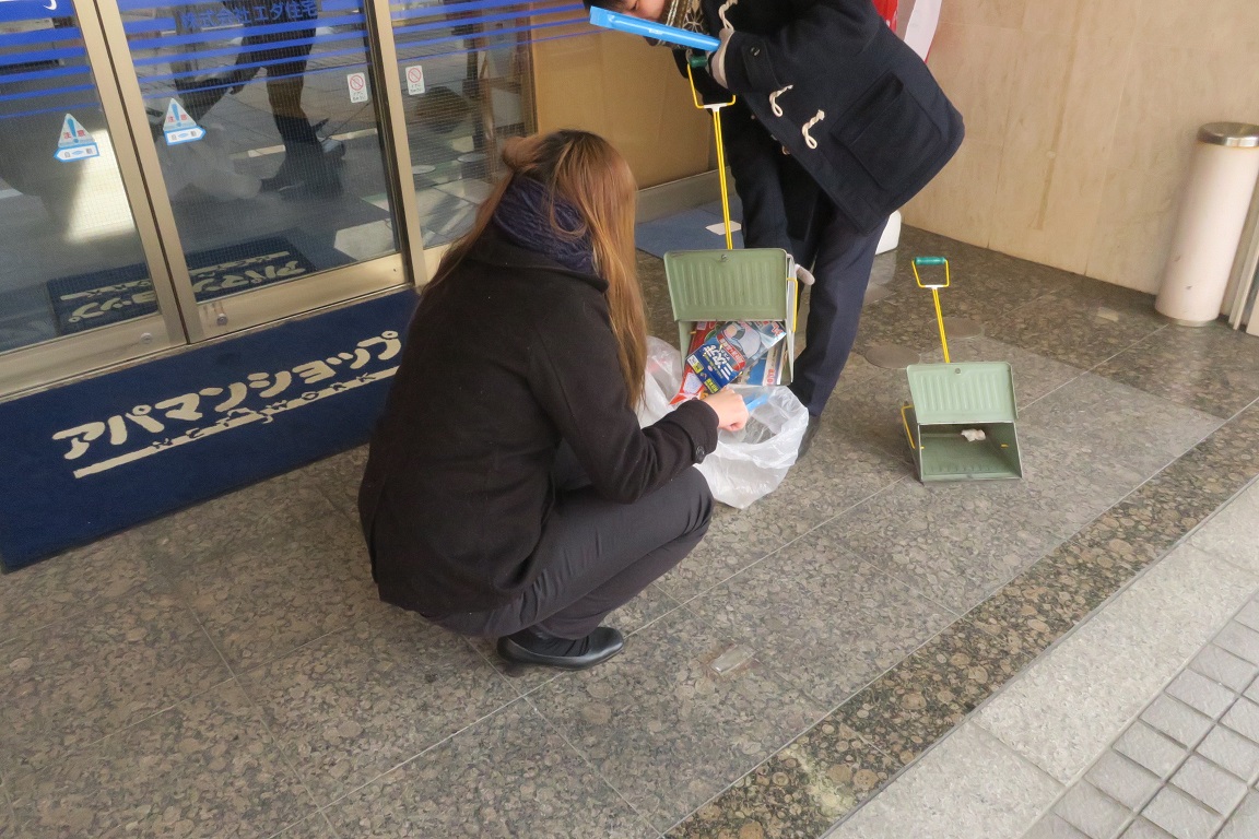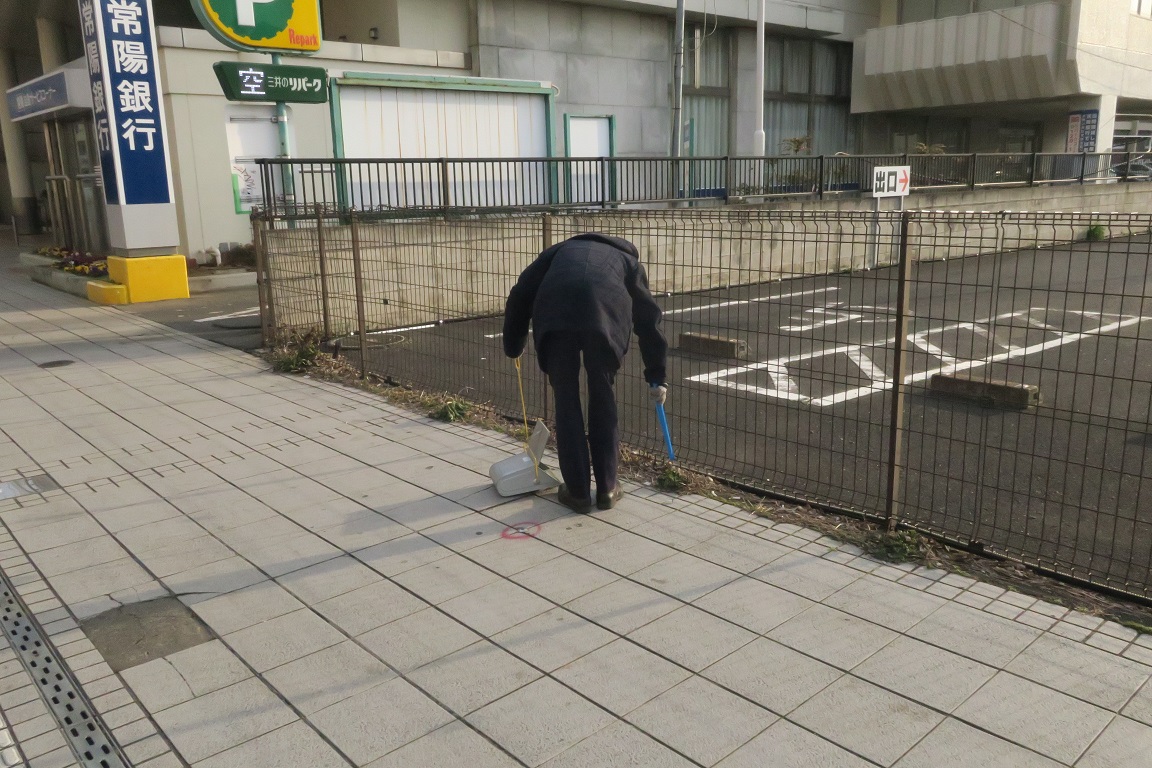 さて建物の日陰や細い道路に雪が残る中、今日も駅前のお掃除です!寒い!