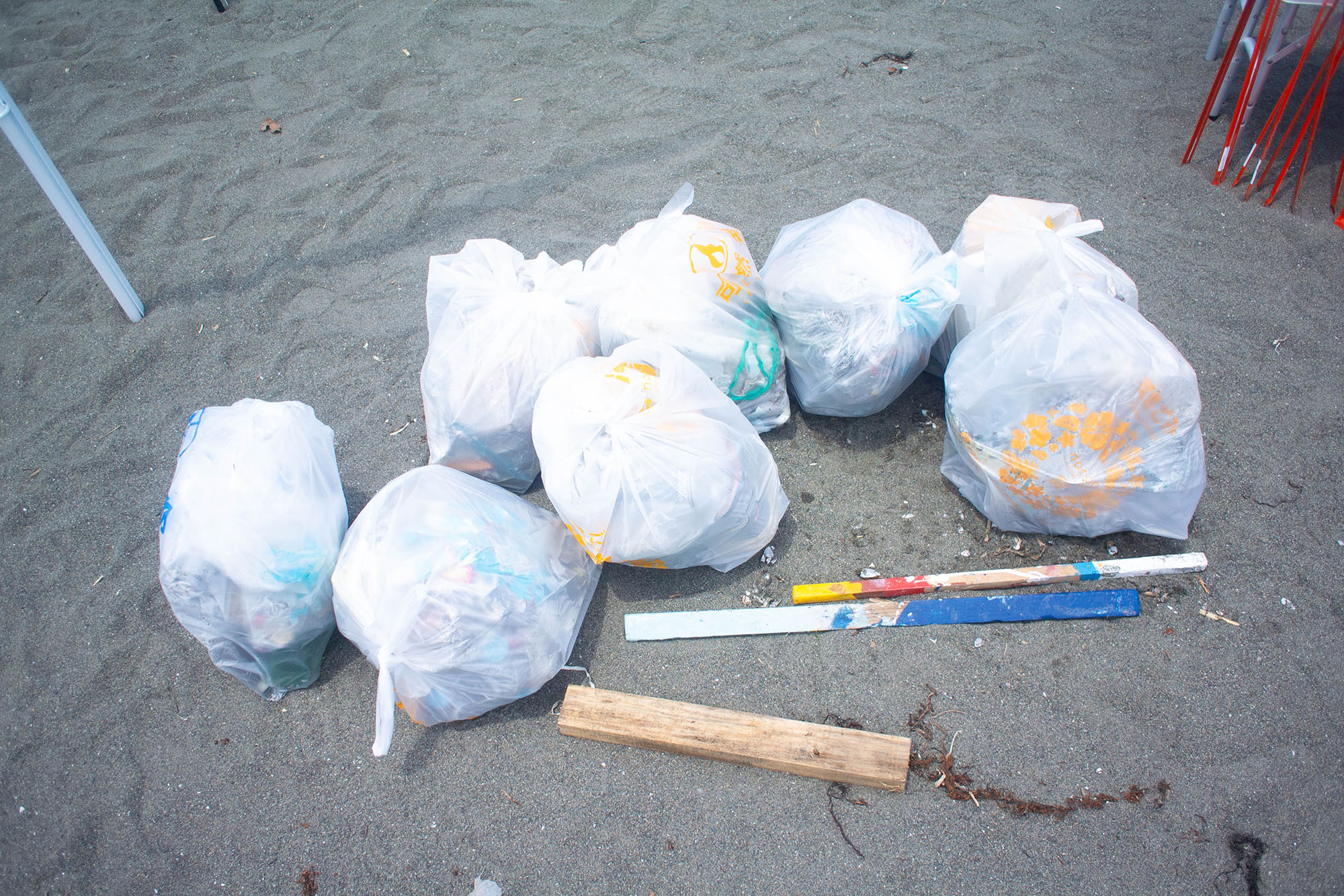 今回のビーチクリーンでは、ペットボトルの回収はありませんでしたがペットボトルは資源として別途回収し、持ち帰り、洗浄・乾燥、圧縮などの準備を行います。Green&Blue Challengeに参加し、再利用された素材からTシャツなどの製作・販売も行っております。