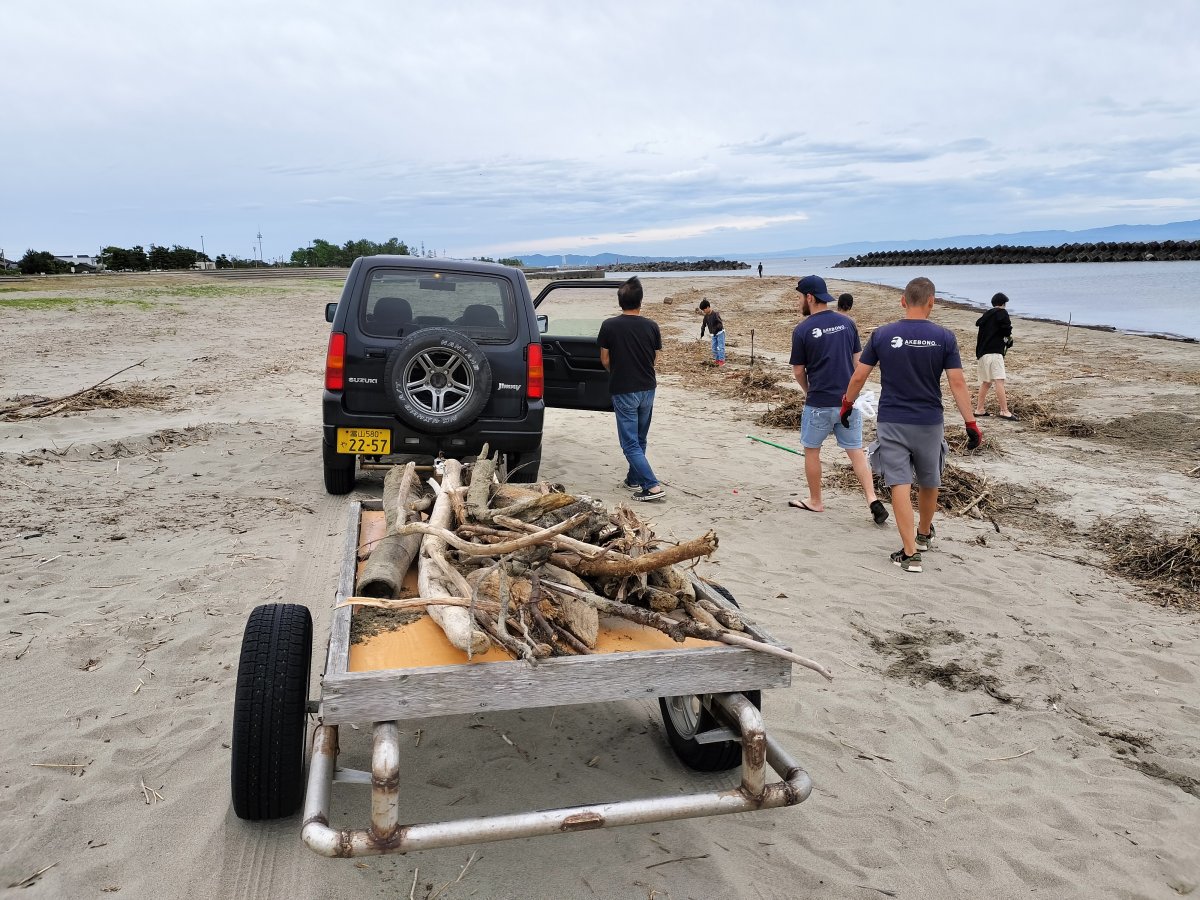 八重津浜は、神通川の河口に位置するので流木が多く流れ着きます。