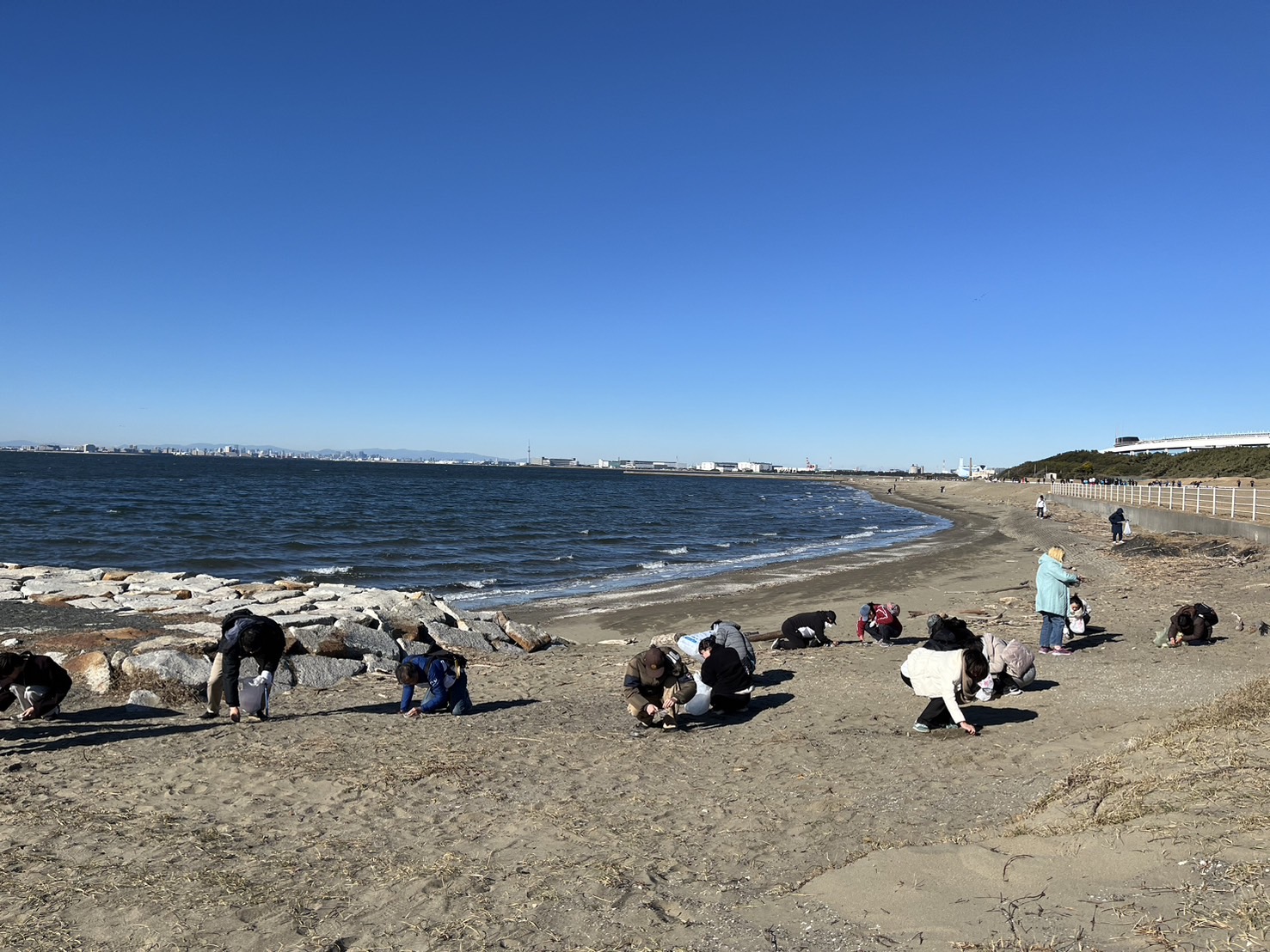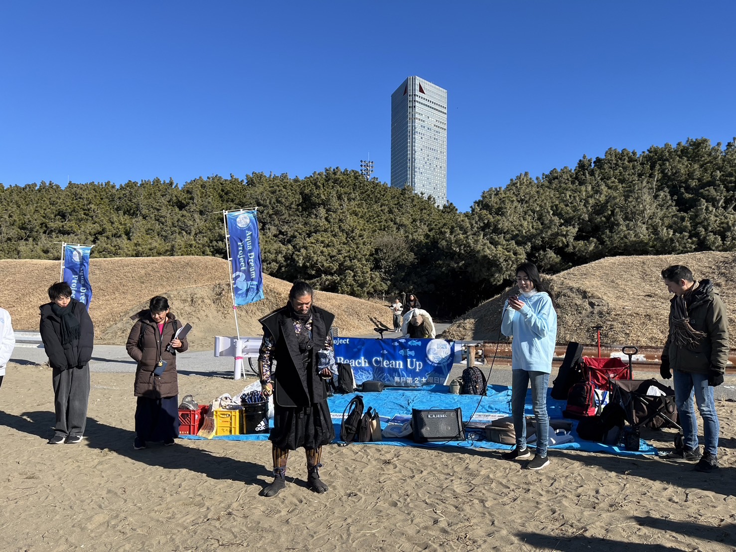 2025年はじめとなる幕張の浜ビーチクリーンでは、いつもの通り晴天の中、参加いただく方々の安全を祈願して、お清めを行いました。