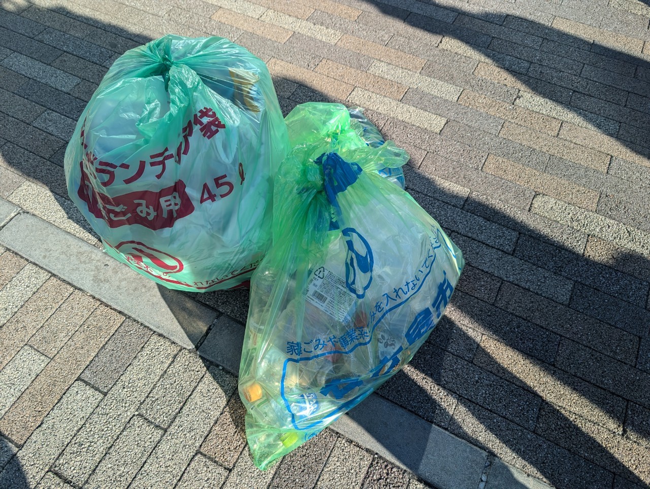 いつもより参加人数は少なかったですが、皆で協力して、袋いっぱいの可燃ごみと2袋分の資源ごみを集めることができました!