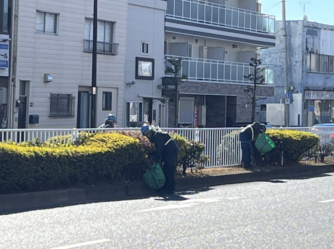 丸八通りでは、中央分離帯の清掃活動をしてくださっている作業員の方と遭遇しました。車の往来が多いので危険ですが、プロにお任せしました。挨拶だけは、しっかりしてきました。