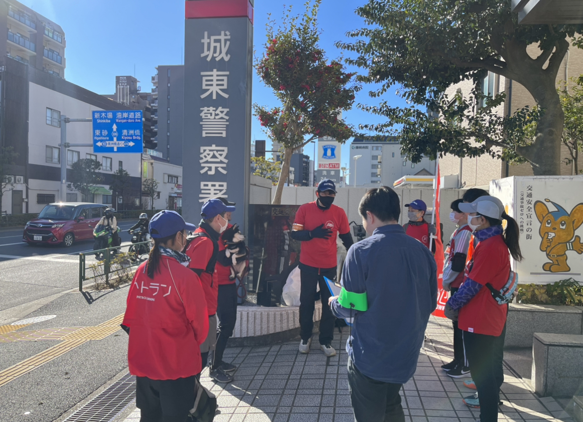 寒いながらも、太陽の陽ざしがあると暖かい。江東区城東警察署にご協力いただき北砂地域での防犯パトロール活動をすることができました。