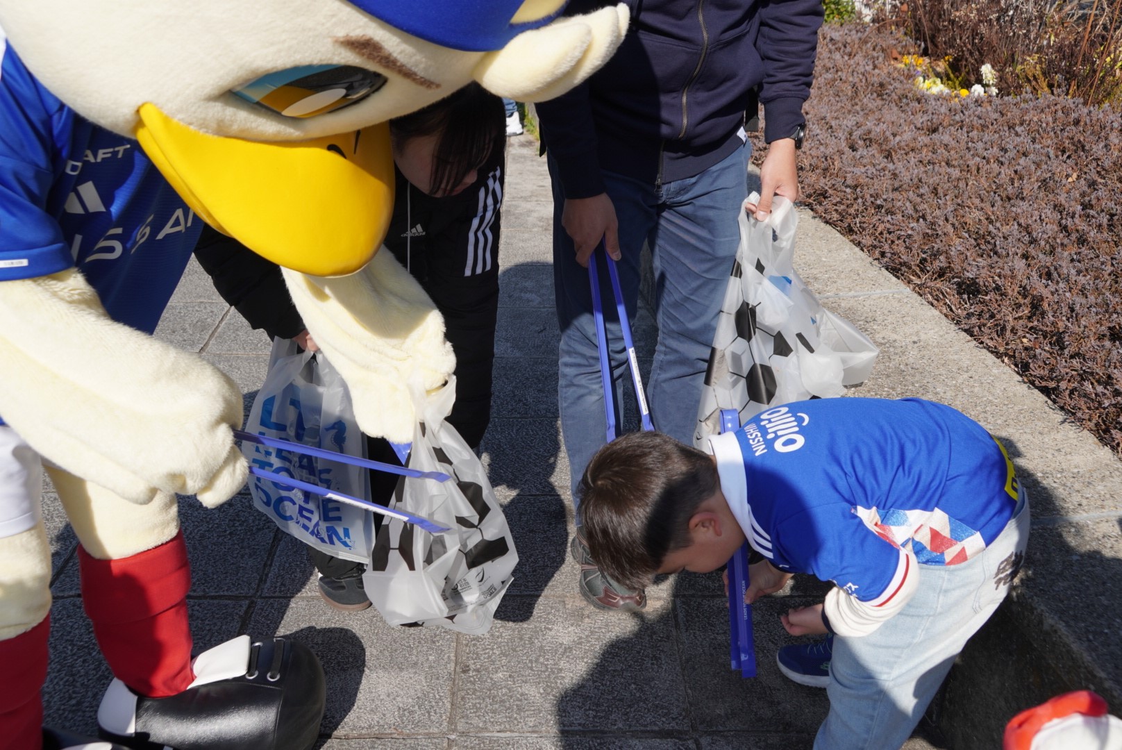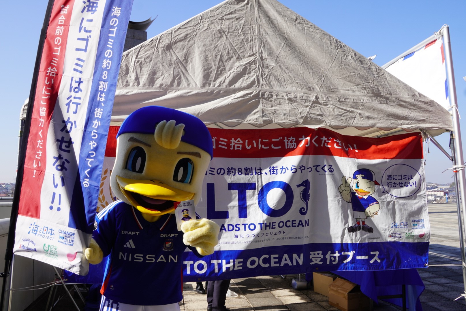 今回初めて、横浜F・マリノスの大人気キャラクターの「マリノスケ」が参加してくれました。そして、湘南ベルマーレのサポーターの皆さまも多く方々が参加し、日産スタジアムをキレイにしてくれました。引き続きマリノスファミリー皆のチカラを合わせて取り組み続けるとこがとても大切ですので、次回もご家族やお友だちをお誘いの上、LTOゴミ拾いにご参加いただけますと嬉しい限りです。