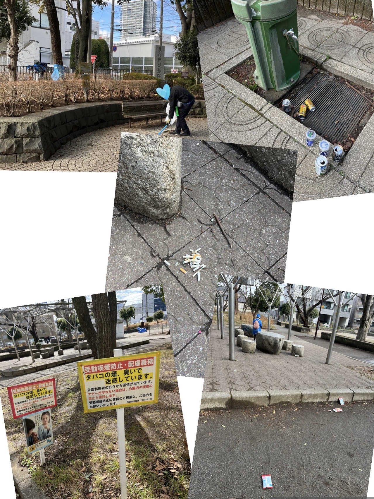 吸い殻も大量で、受動喫煙防止の看板も虚しい。