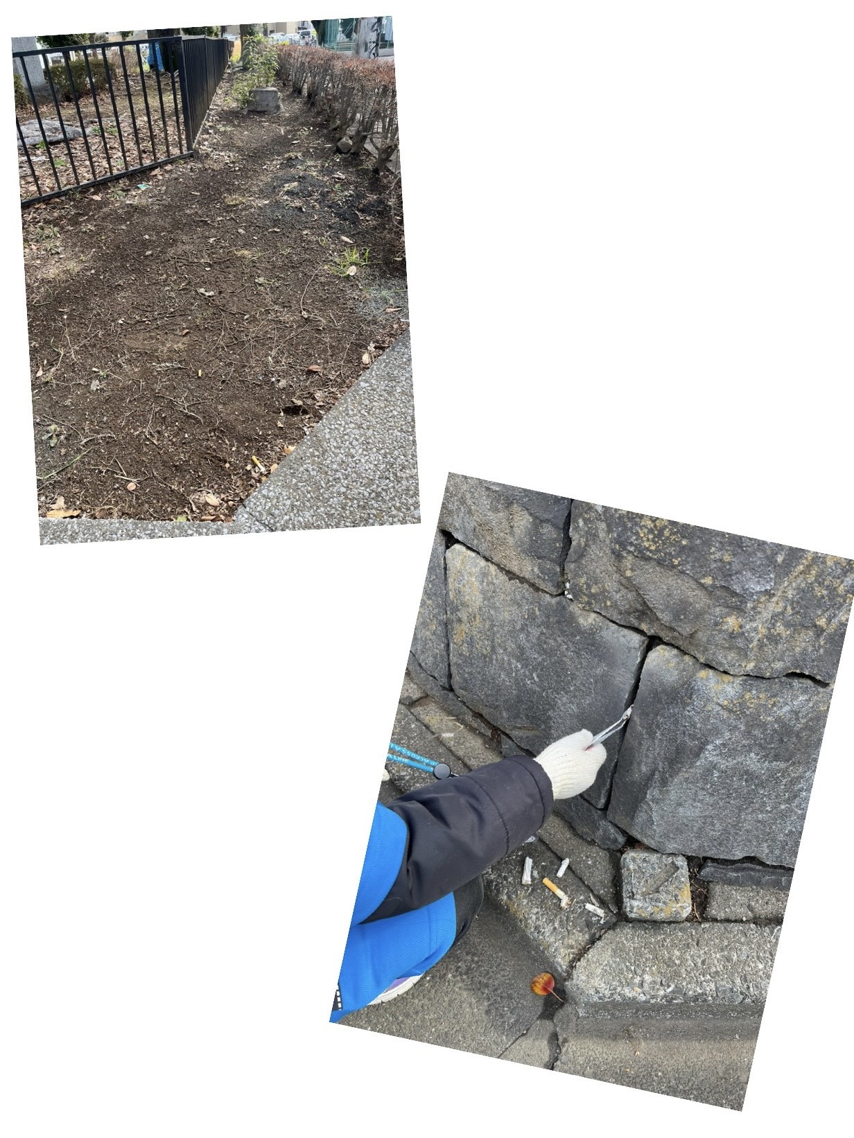 相変わらず石積みの隙間に吸い殻を入れるおバカさんが。