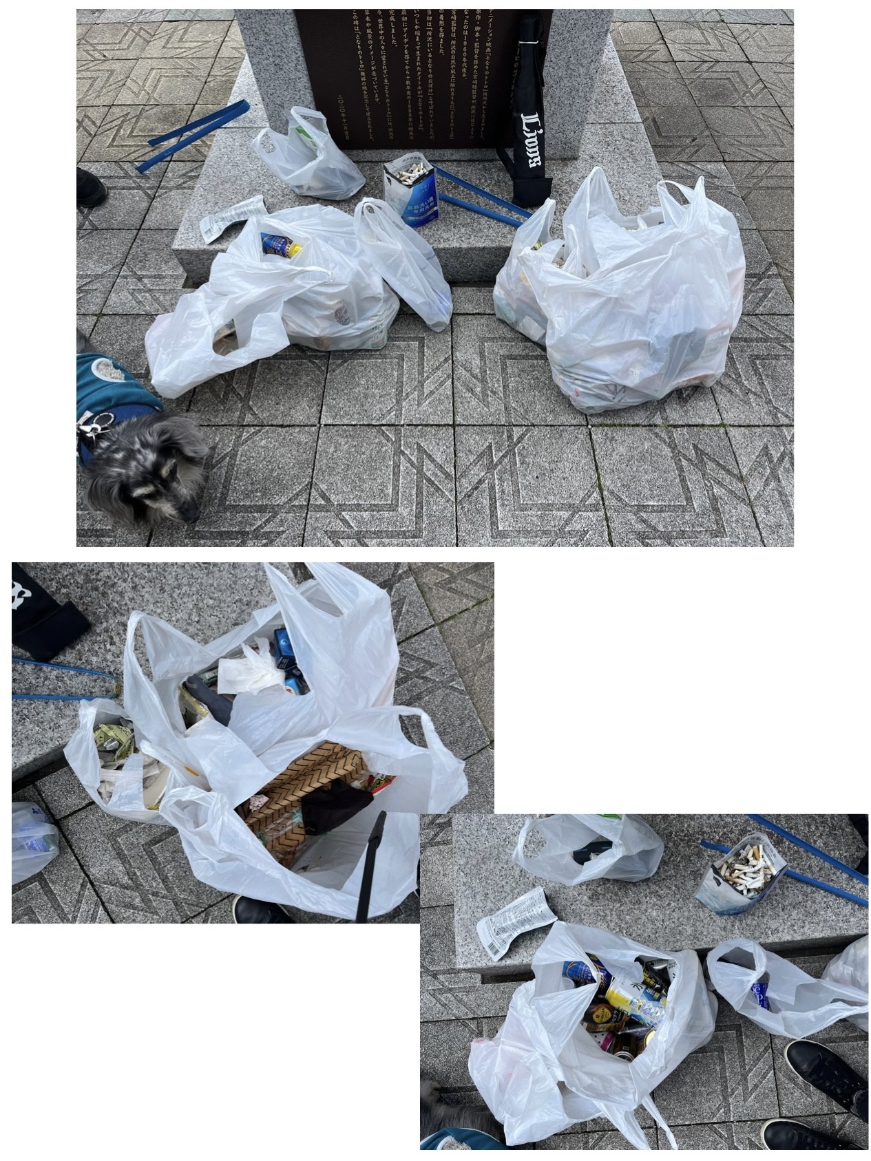トトロの碑に戻りゴールです。たっぷり拾ってゴミ袋が重い、、、