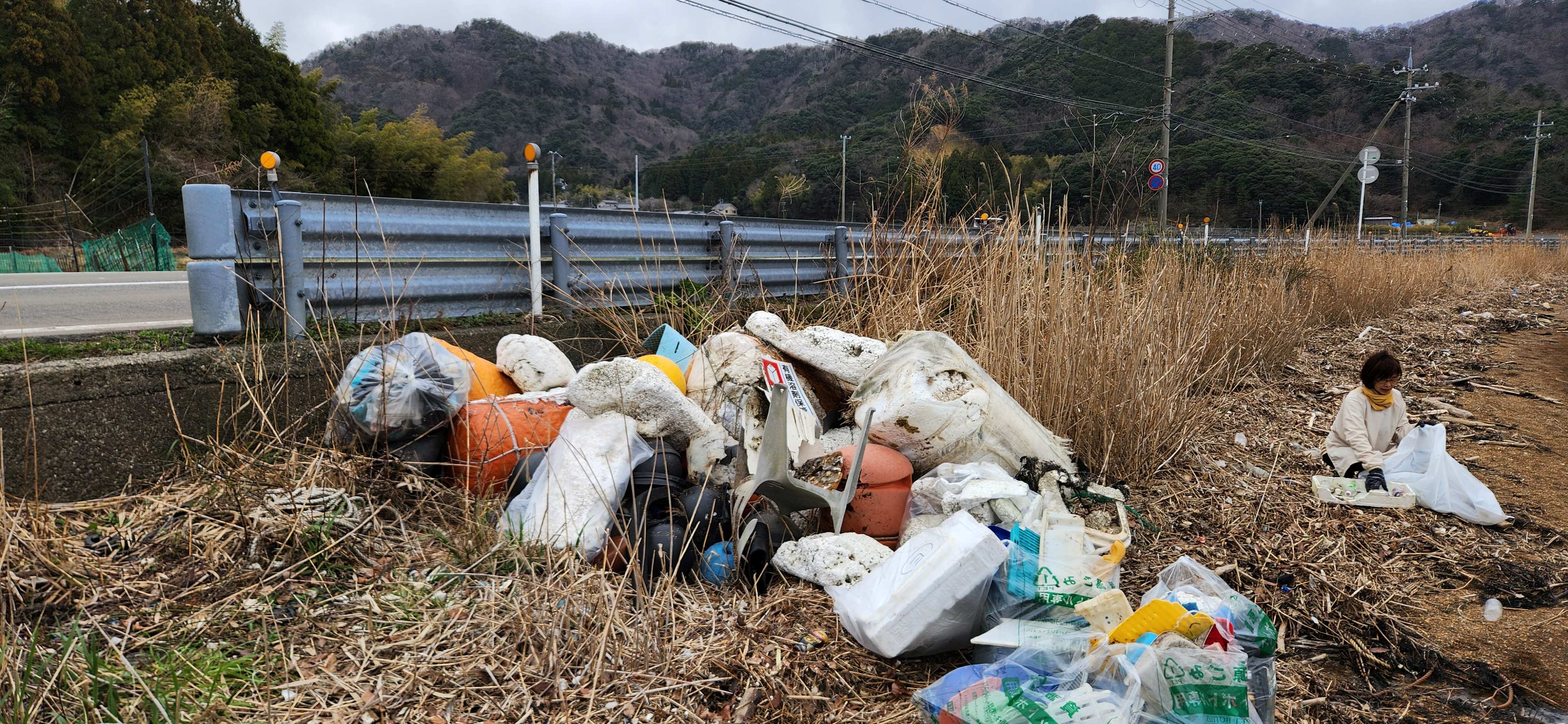 大型発泡フロートを1ケ所に集め袋に入るゴミのみ搬出、軽トラ1杯分位になりました!波の花も発生する豊かな海、守っていきたいです