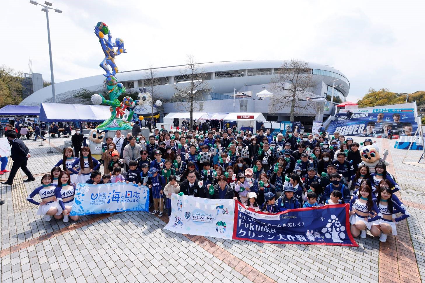 当日はアビスパ福岡では今年で3回目となるシャレン!プロジェクト『わたしたちのホームを美しく!Fukuokaクリーン大作戦』も開催予定だったため、これまで200名を超える大規模クリーン活動であるこのイベントと合わせて、アビスパ福岡として初めての「LEADS TO THE OCEAN」を実施いたしました。