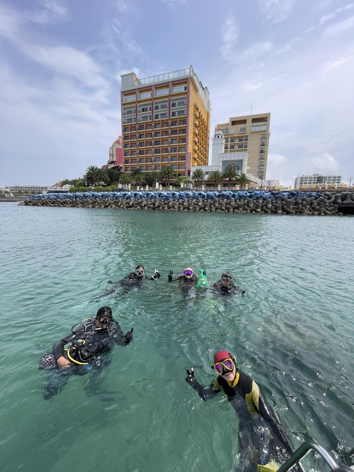 海班は近くの浜川漁港からボートを出してアメリカンビレッジ沖の清掃活動を行いました。