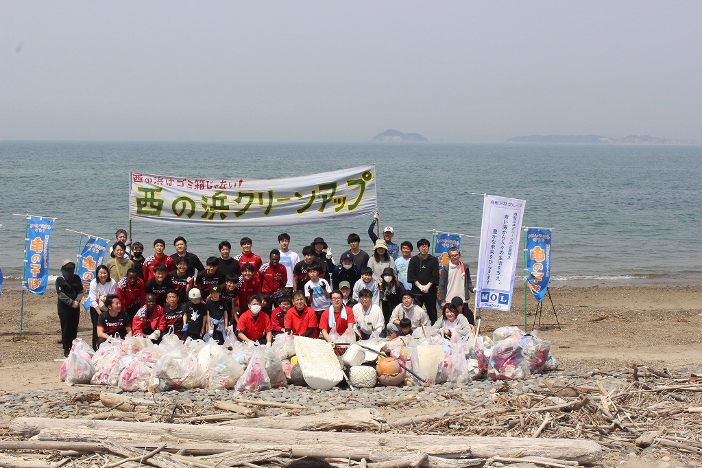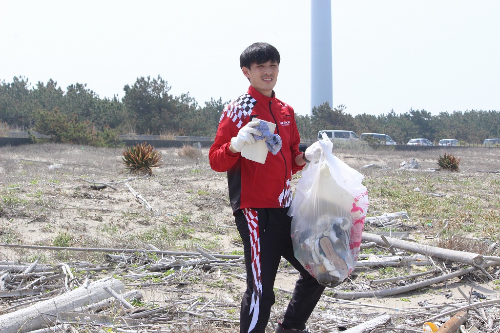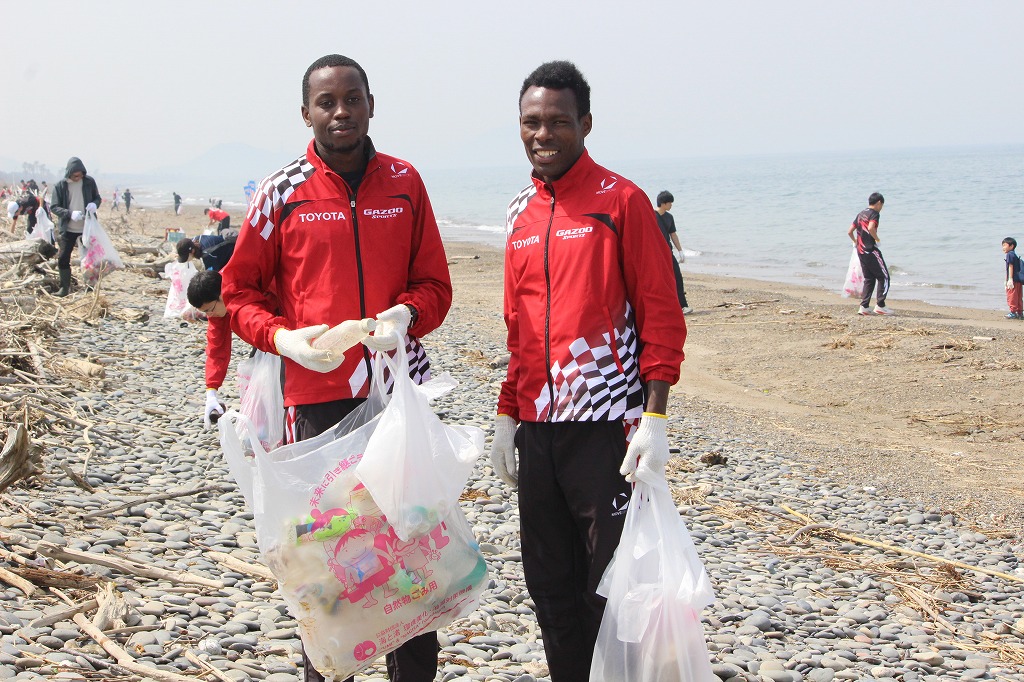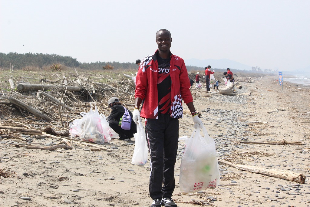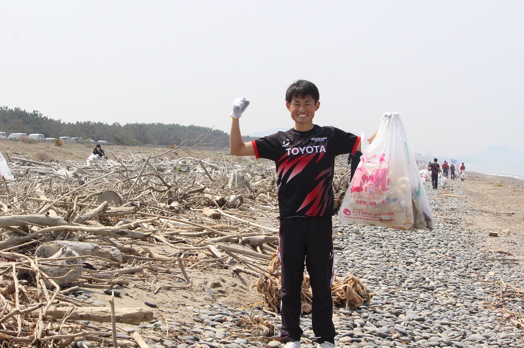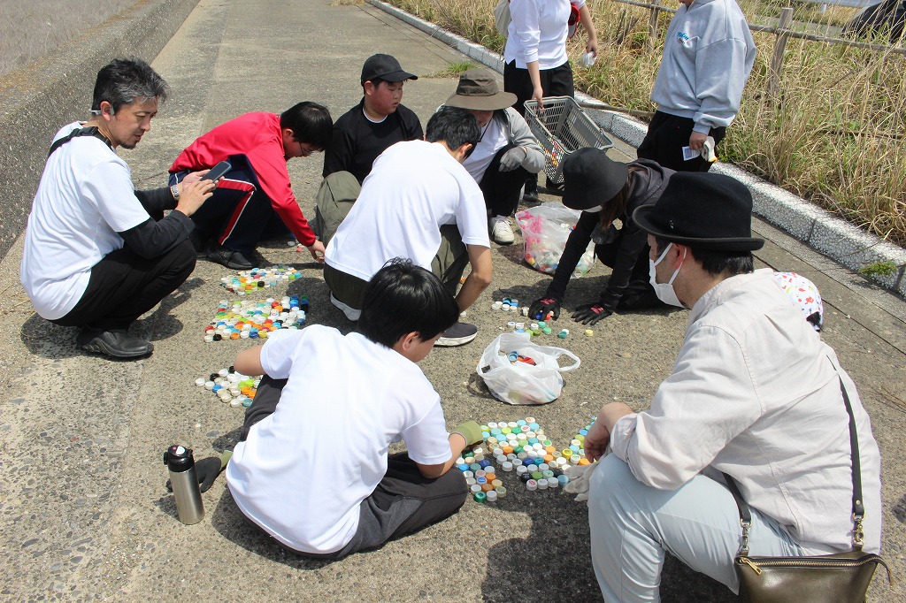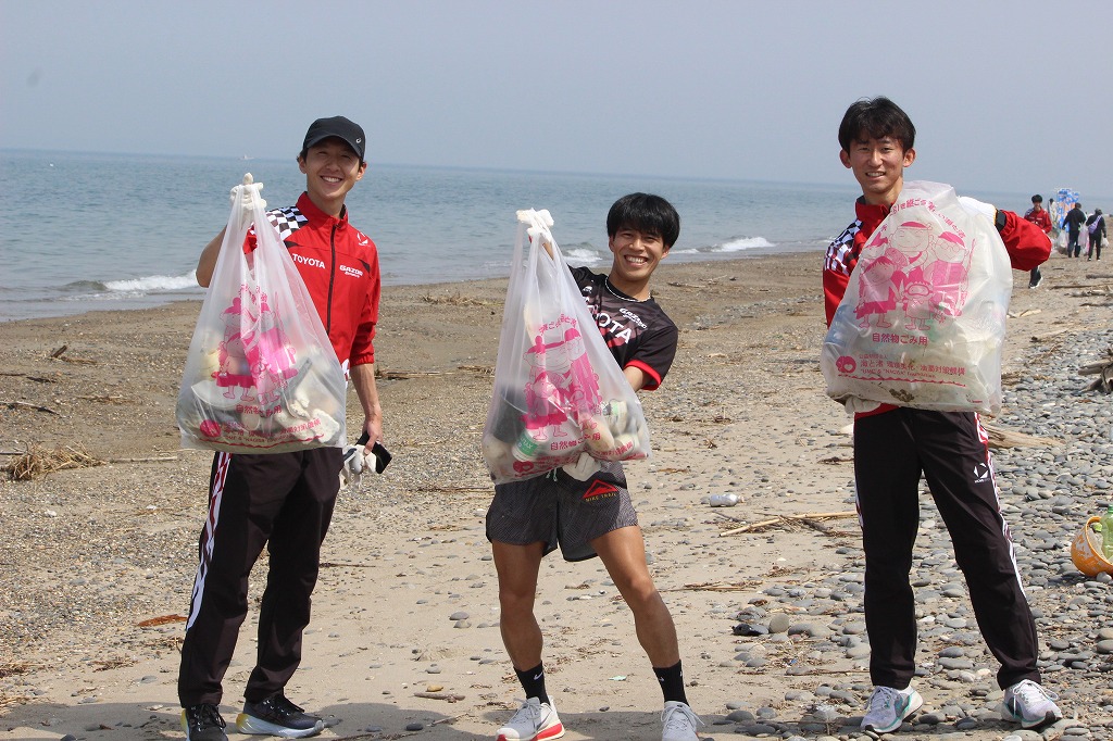 気持よい風が緩く吹く中での活動となりました。参加者46人(トヨタ自動車陸上部18人・グリーン海事1・パチンコオータ4・イオスエンジニアリング4)ゴミの総重量279Kg キャップの数1131個