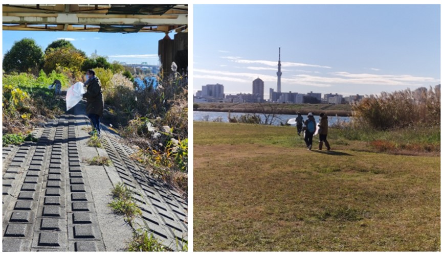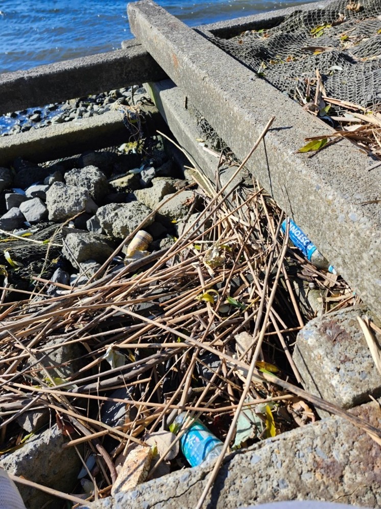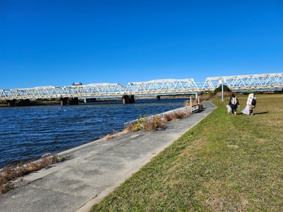 風が強かったものの、太陽の光を反射してキラキラと光る水面を愛でつつ、川沿いのゴミを拾っていきました(^^♪