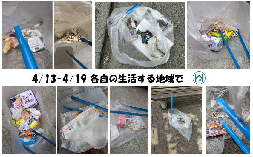 4/13(日)~4/19(土)を活動期間として、参加者それぞれの住む地域のゴミ拾いを実施しました。
