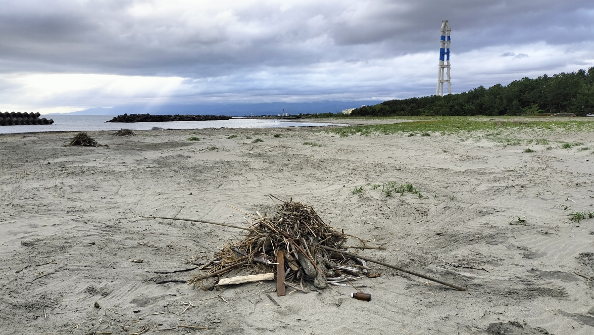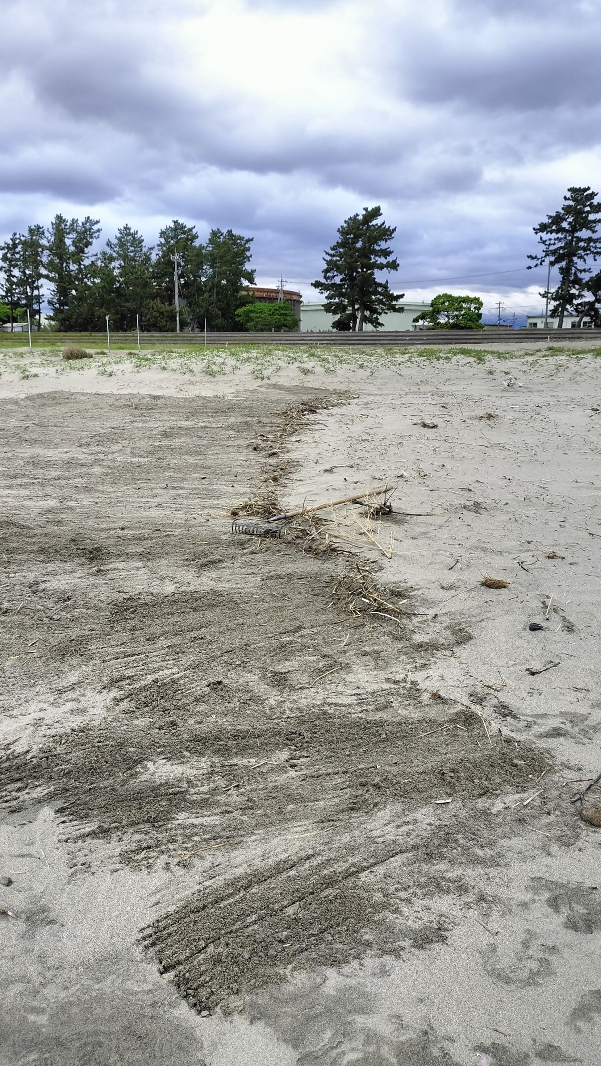 八重津浜は神通川の河口に位置しており、流木やアシガラ(葦殻)などの漂着物が多いのが特徴です。アシガラ(葦殻)は、レーキーで集めて回収しました。まだまだ残っていますが、夏シーズンに向けて片づけて行きたいです。